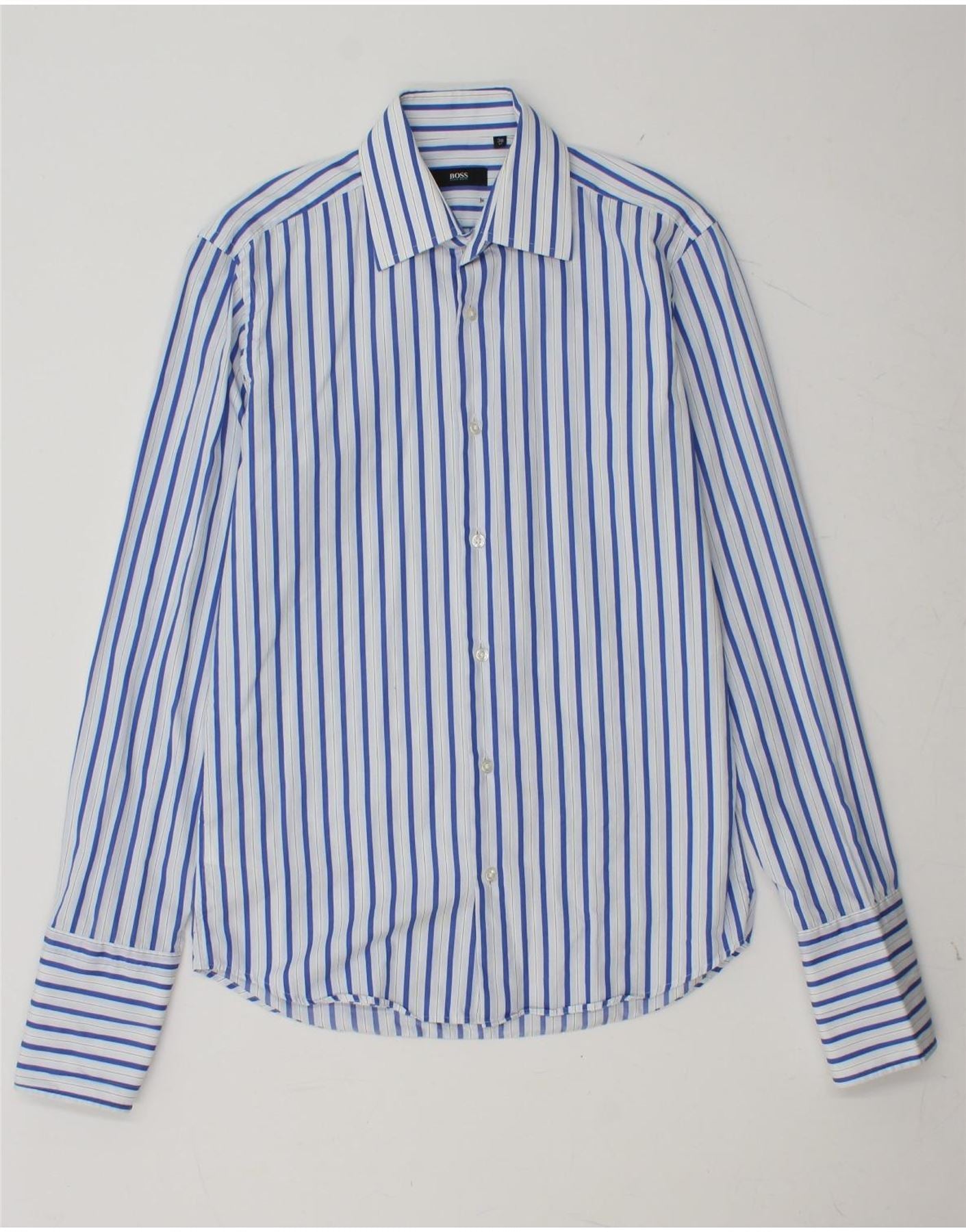 HUGO BOSS Formales Herrenhemd, Größe 38 15, mittelblau gestreift, Baumwolle