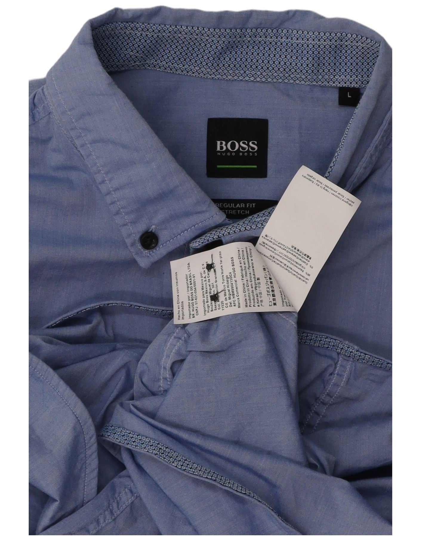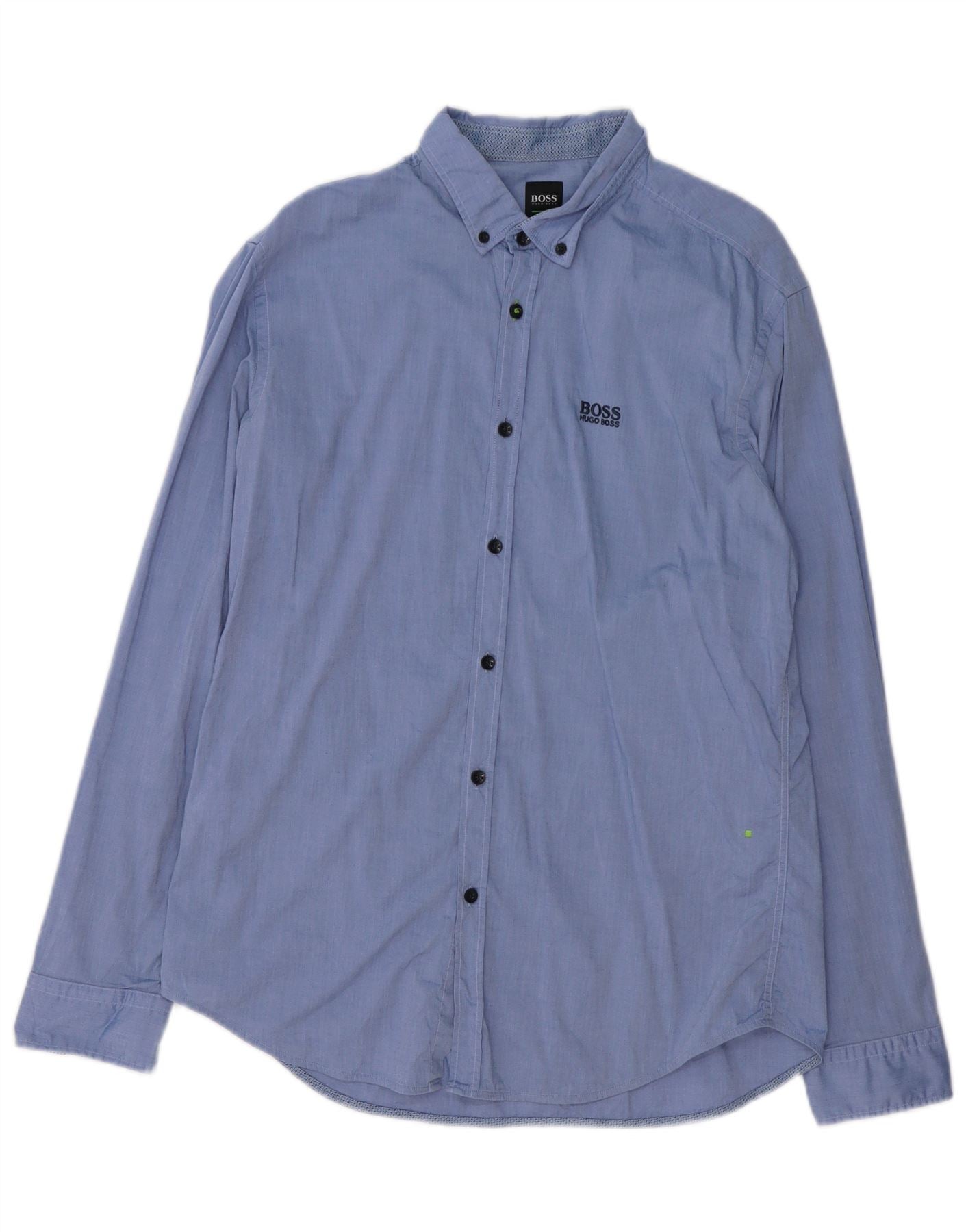 HUGO BOSS Herren-Hemd mit normaler Passform, große blaue Baumwolle