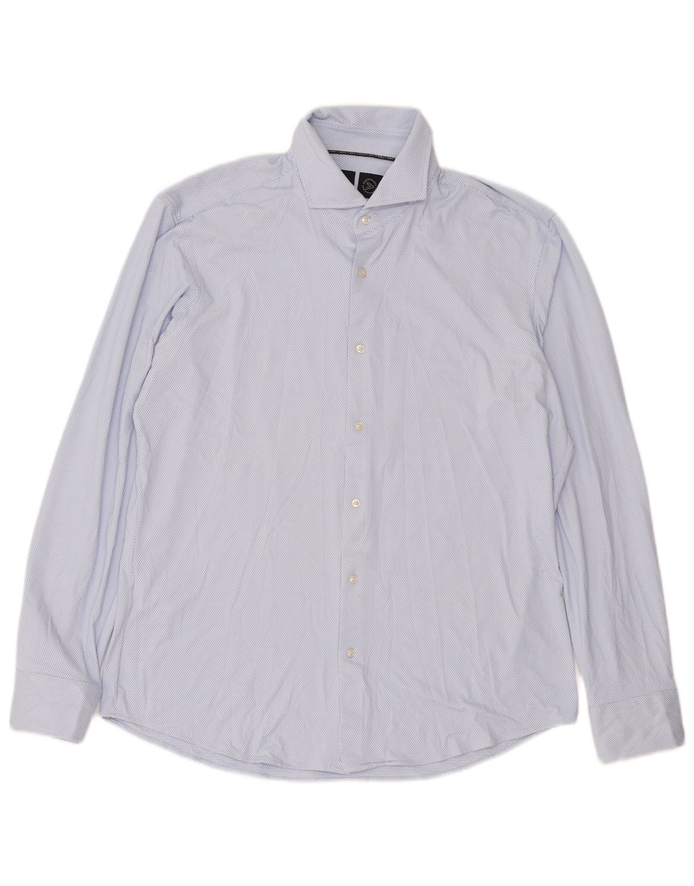 HUGO BOSS Herren-Hemd mit normaler Passform, großes, blau gepunktetes Polyester