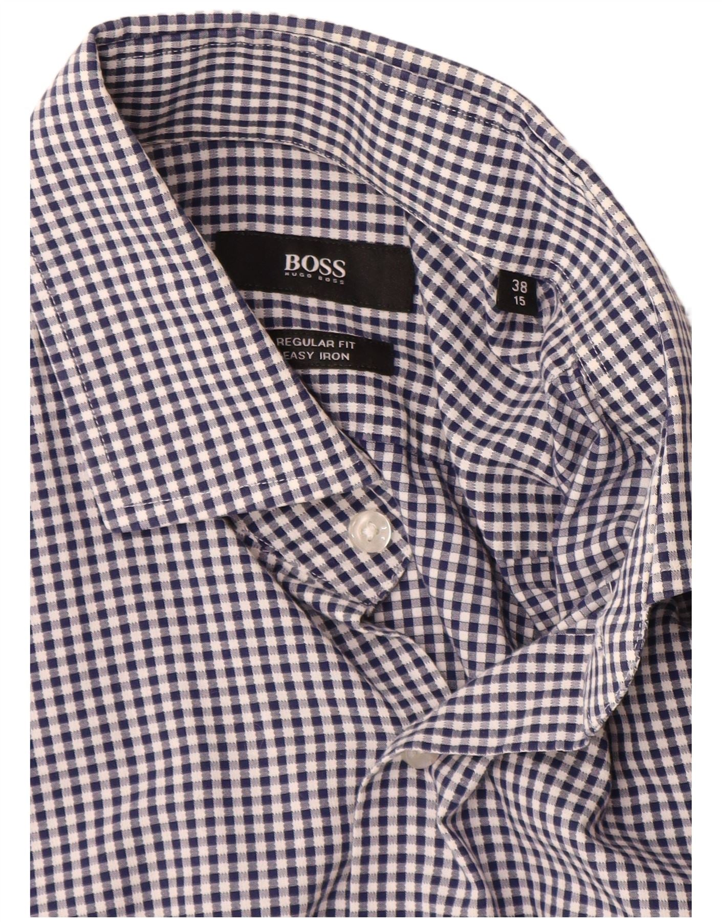 Hugo Boss Herren-Hemd mit normaler Passform, Größe 38 15, mittelmarineblaue Gingham-Baumwolle