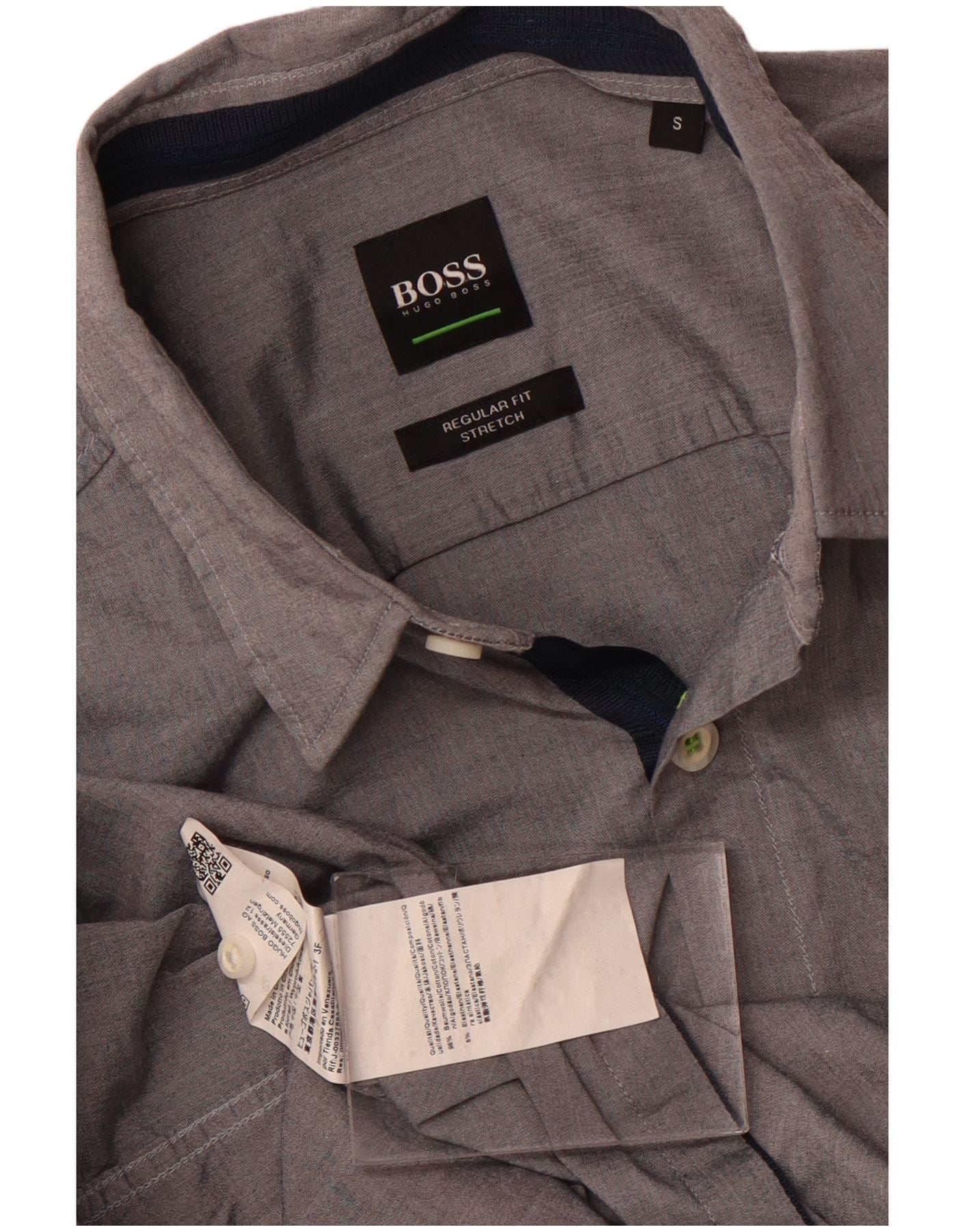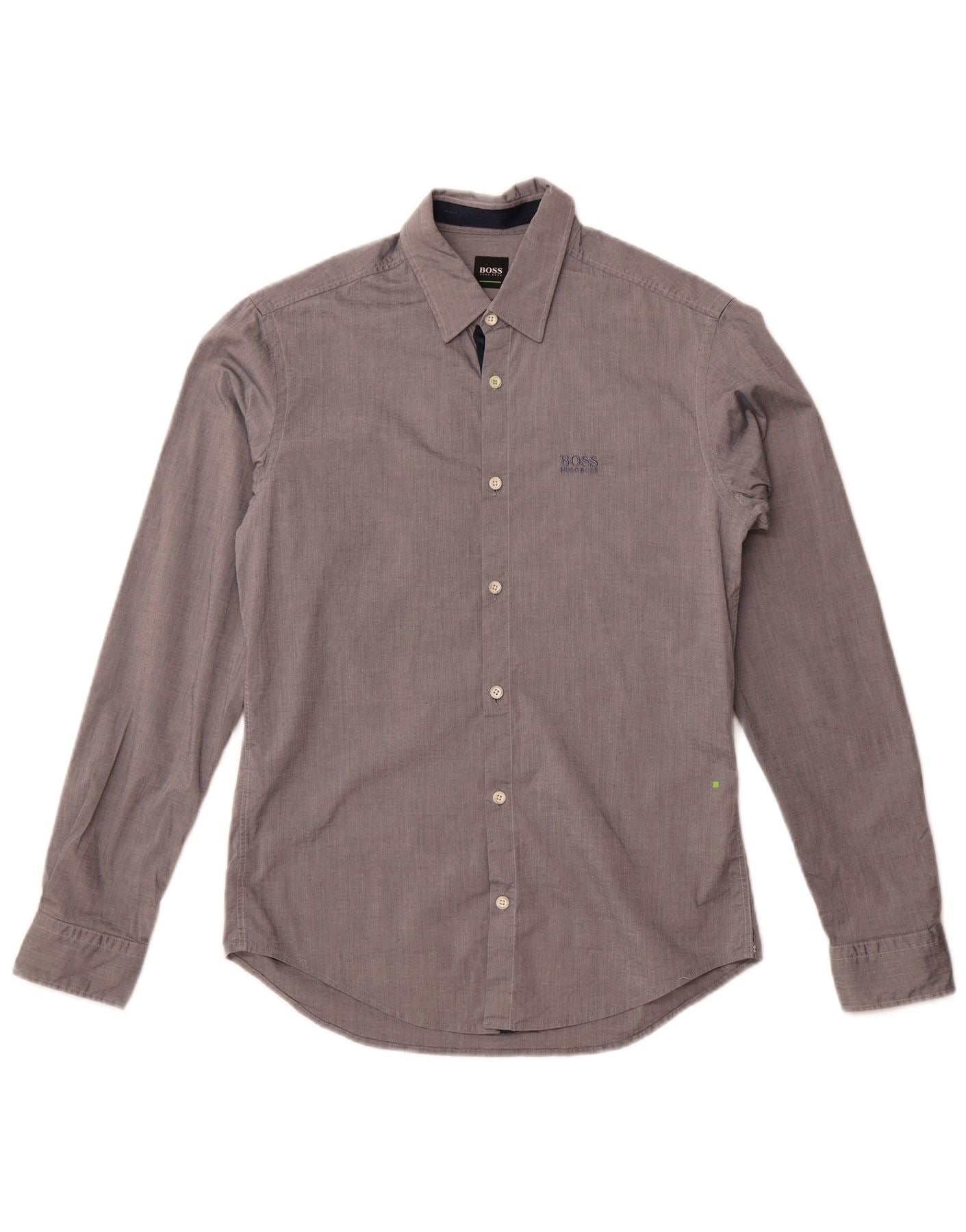 - KI-Beschreibung: Dieses Herrenhemd von Hugo Boss ist aus einer grauen Baumwollmischung mit Stretch für Komfort gefertigt. Es verfügt über einen klassischen Kragenausschnitt und eine durchgehende Knopfleiste vorne. Die langen Ärmel werden durch hübsche Bündchen abgerundet. Die reguläre Passform sorgt für eine bequeme Silhouette. Ein dezentes Logo-Detail sorgt für den charakteristischen Touch.