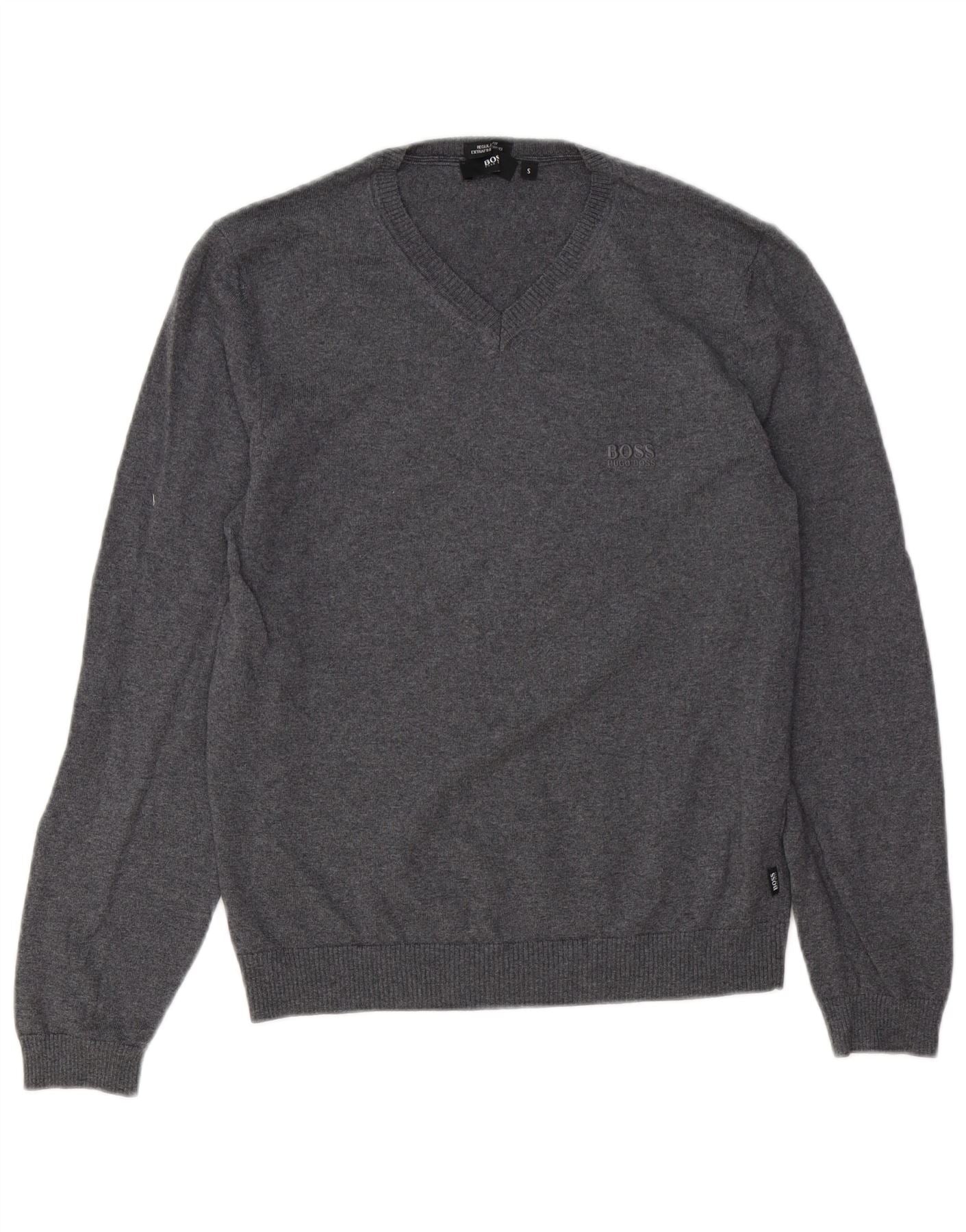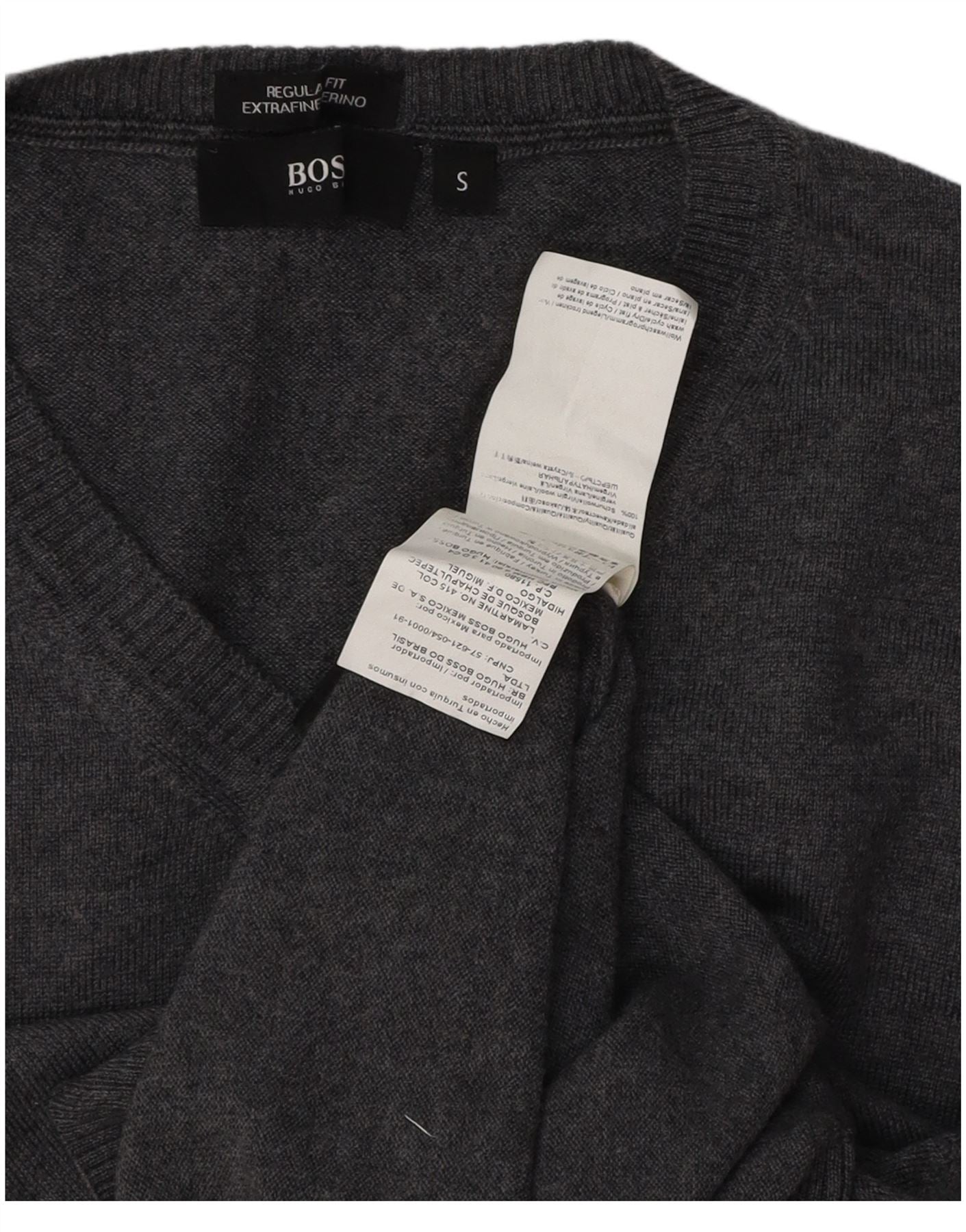 HUGO BOSS Herren-Pullover, reguläre Passform, V-Ausschnitt, klein, graue Schurwolle