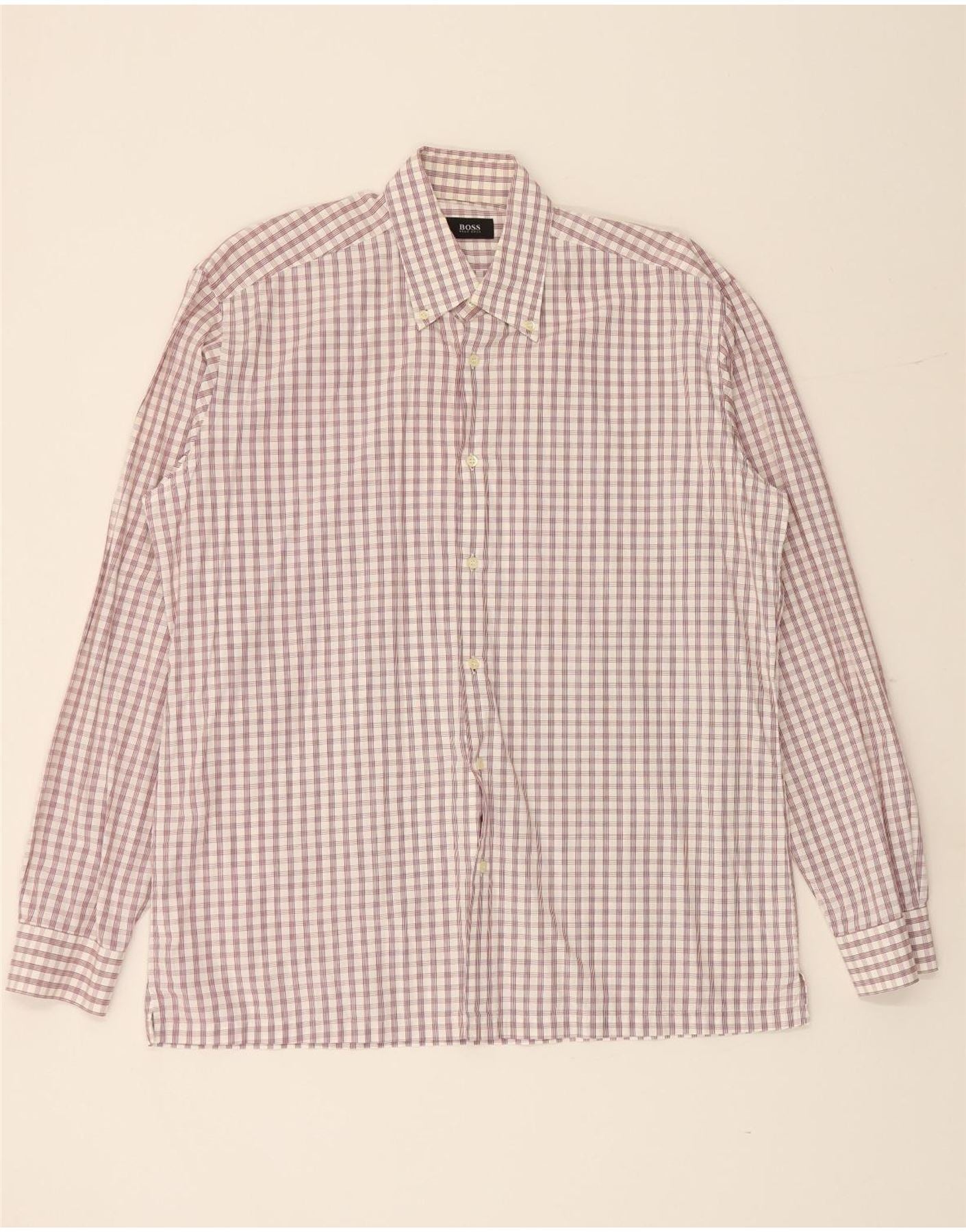 HUGO BOSS Herrenhemd Größe 16 41 Große weiß karierte Baumwolle