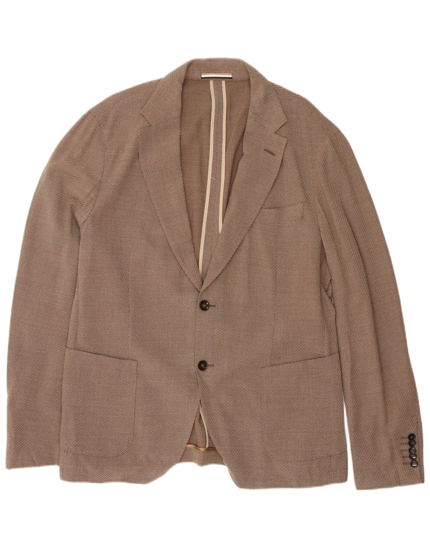 Hugo Boss Herren Slim Fit 2-Knopf-Blazerjacke EU 56 3XL Braune Schurwolle