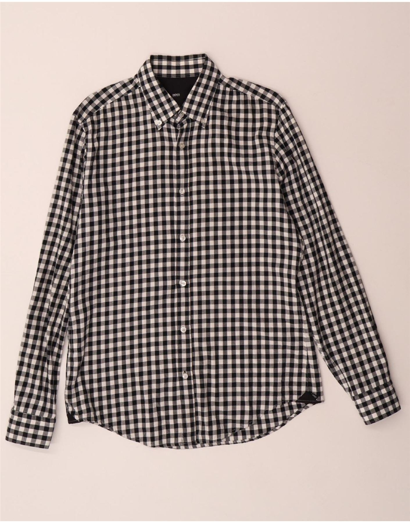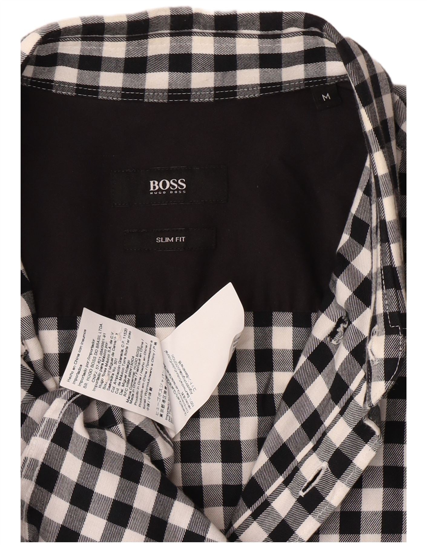 HUGO BOSS Herren Slim-Fit-Flanellhemd aus mittelschwarzer Gingham-Baumwolle