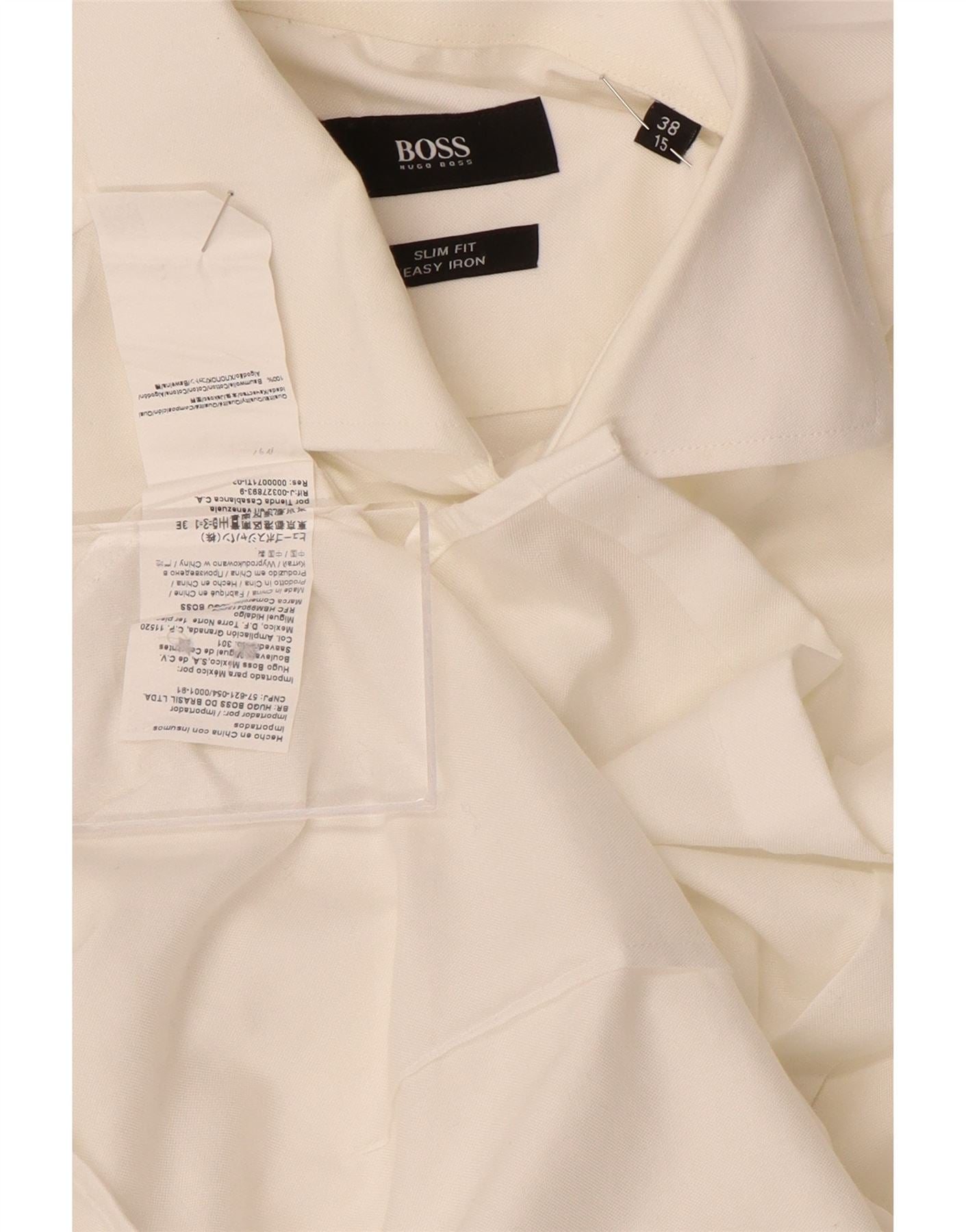 HUGO BOSS Herren Slim Fit Hemd Größe 38 15 Mittelweiße Baumwolle