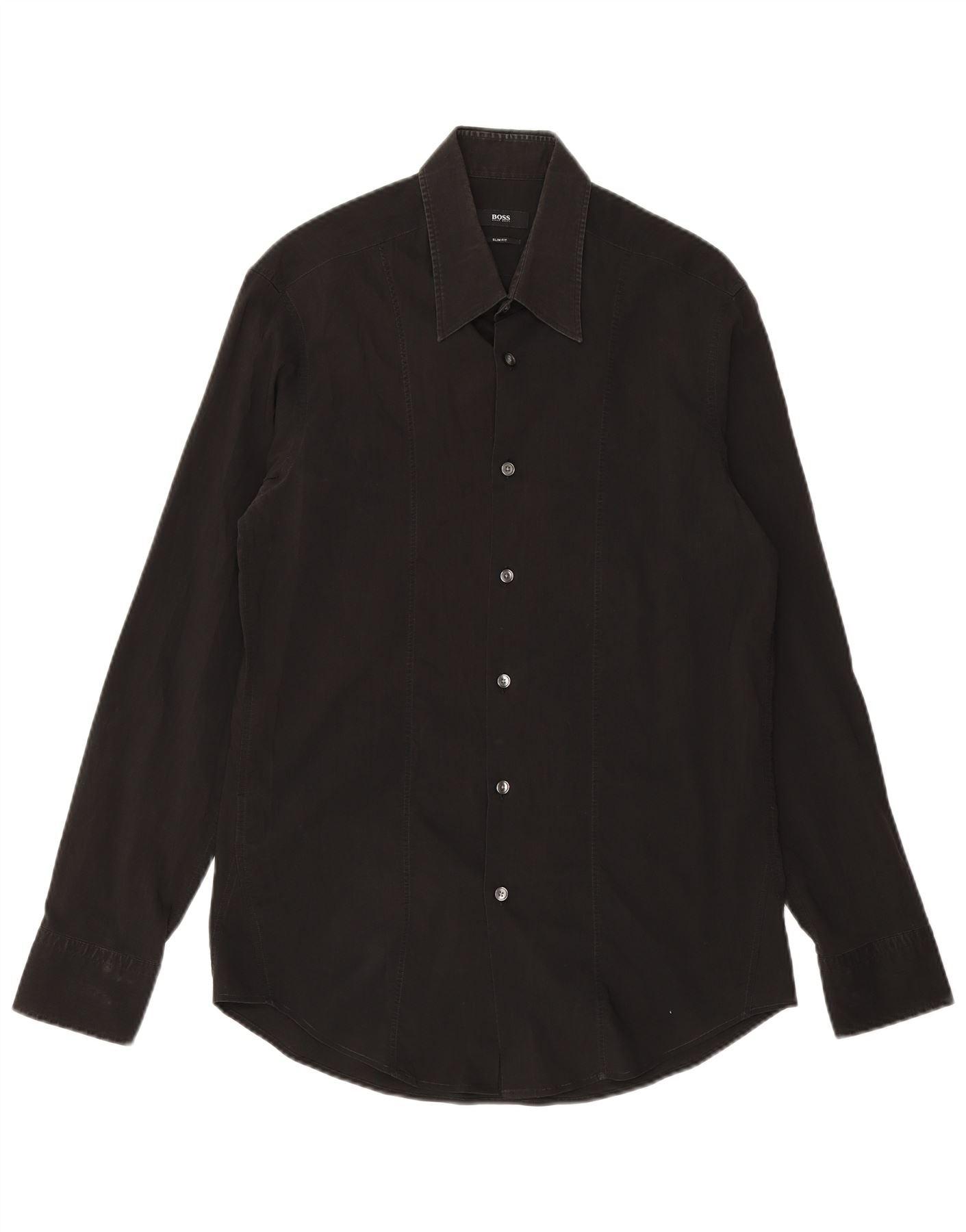 HUGO BOSS Herren Slim Fit Hemd Größe 41/42 Große schwarze Baumwolle