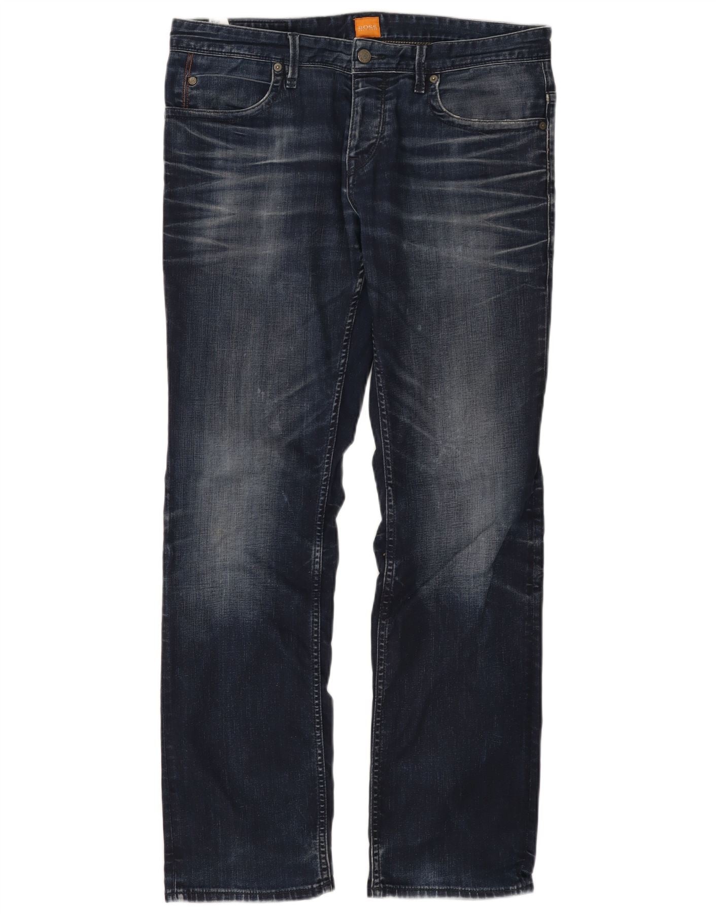 HUGO BOSS Herren Straight Jeans W34 L32 Marineblaue Baumwolle