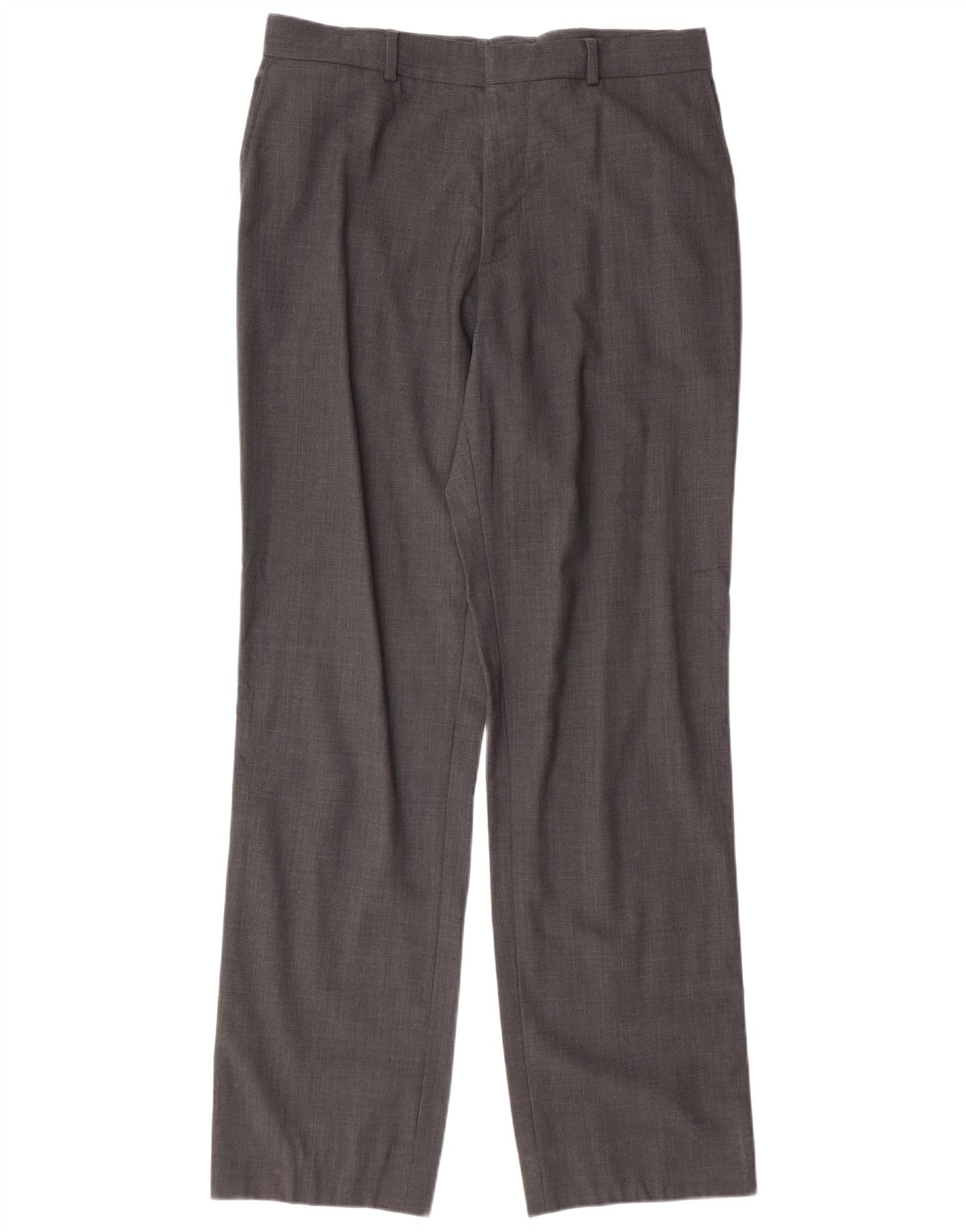 HUGO BOSS Herren gerade Anzughose IT 52 XL W34 L34 Graue Schurwolle