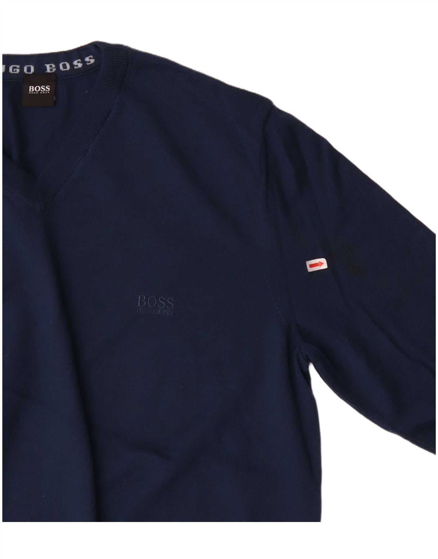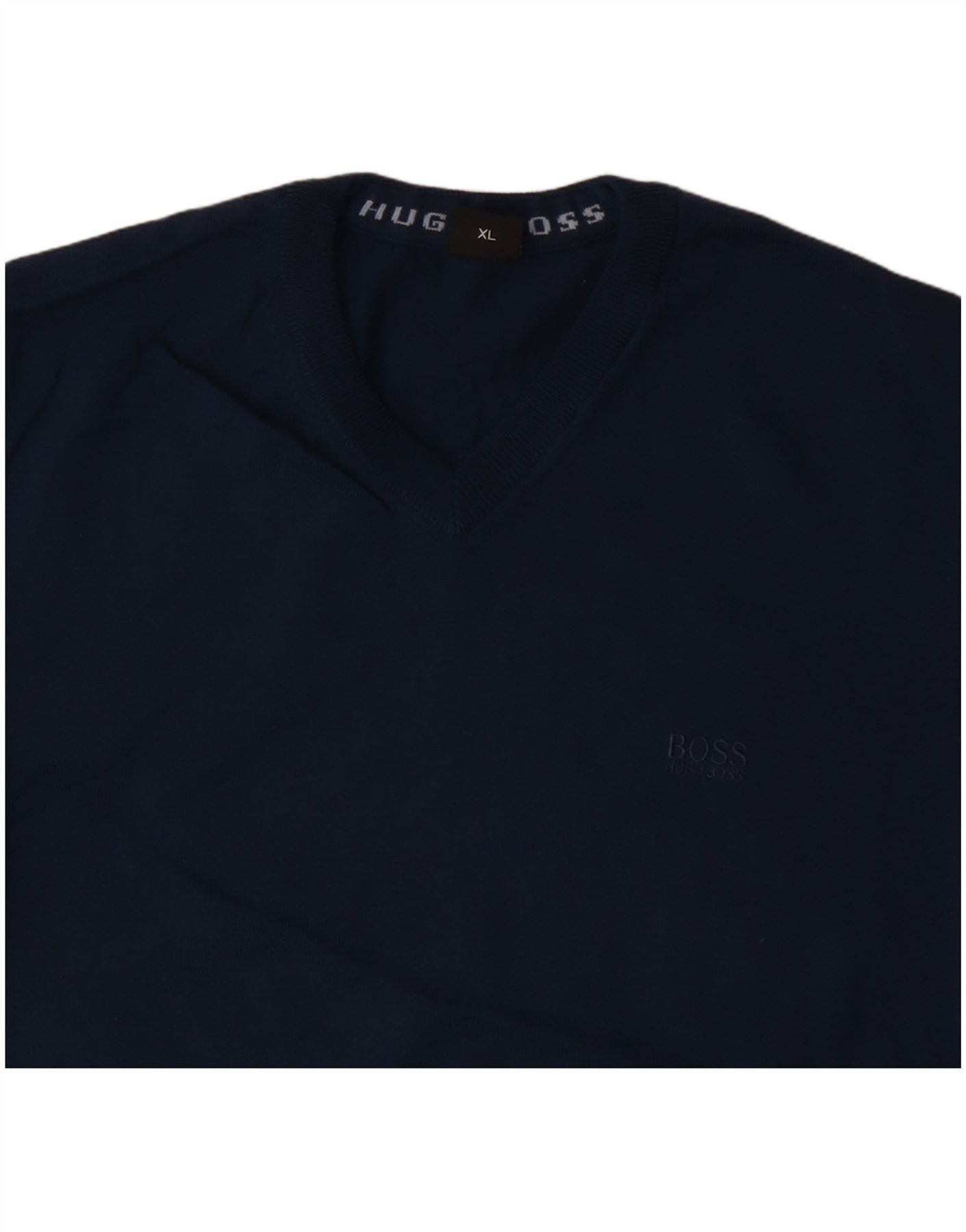 HUGO BOSS Herren-Pullover mit V-Ausschnitt, XL, marineblaue Wolle