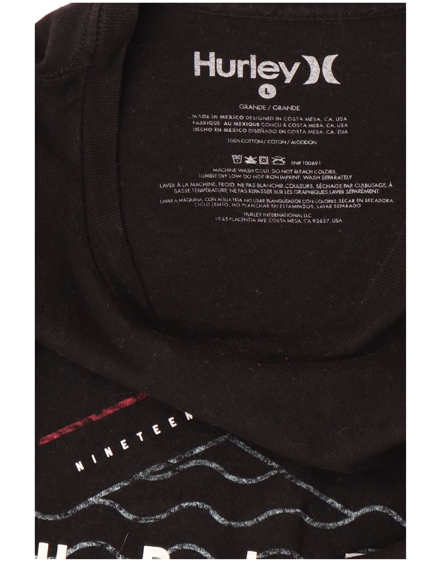 HURLEY Mens Graphic T-Shirt Top Large Black Cotton