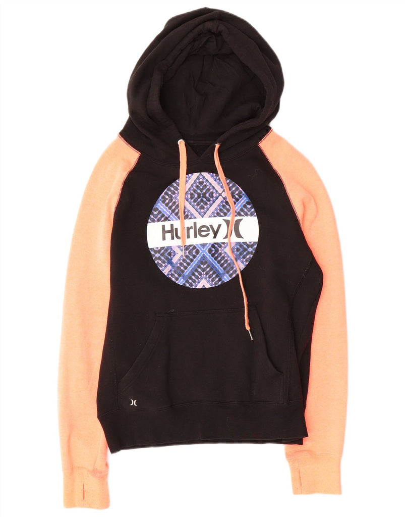 HURLEY Womens Oversized Graphic Hoodie Jumper UK 6 XS Black Colourblock