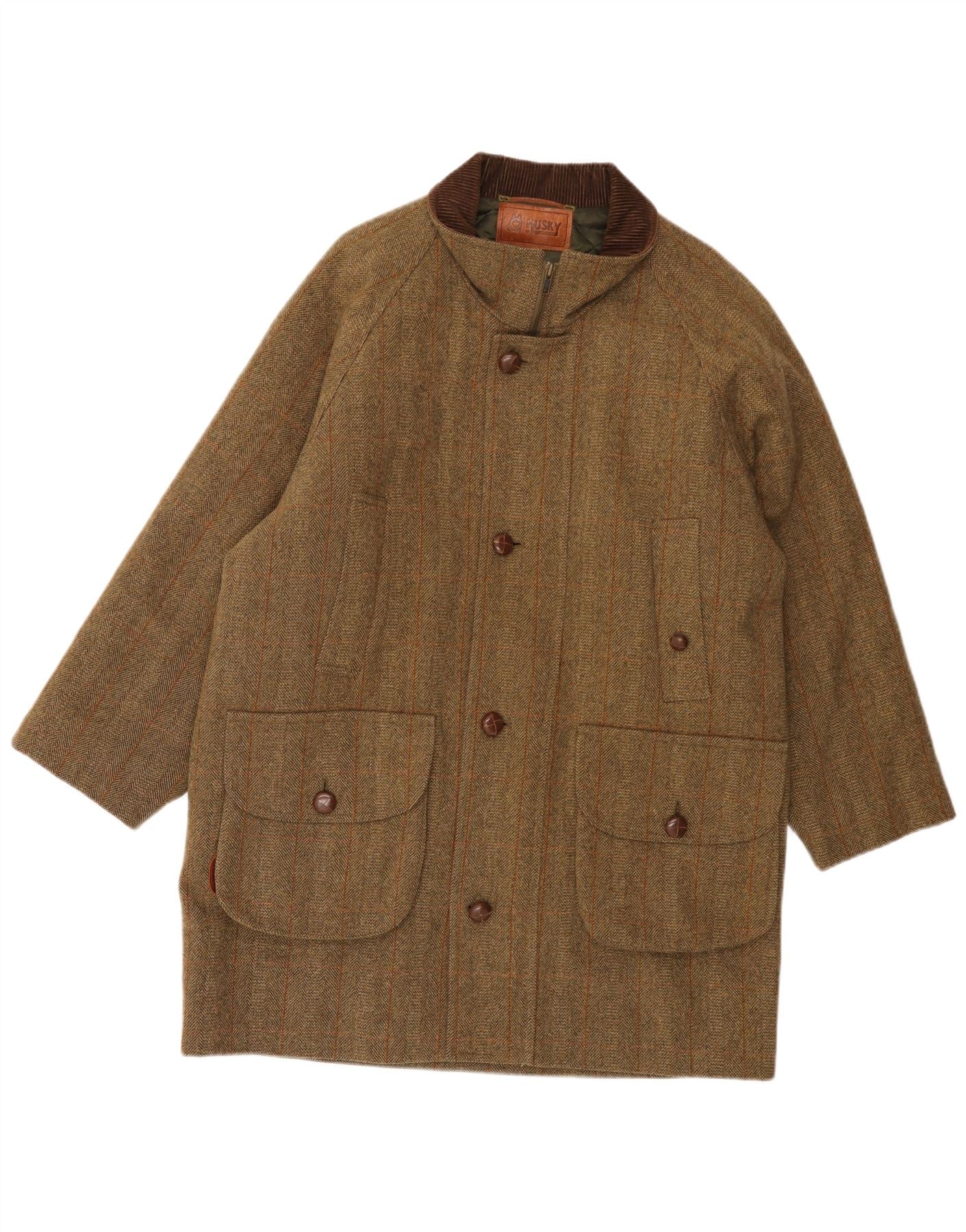 HUSKY Herrenmantel IT 48 Mittelbraunes Fischgrätenmuster