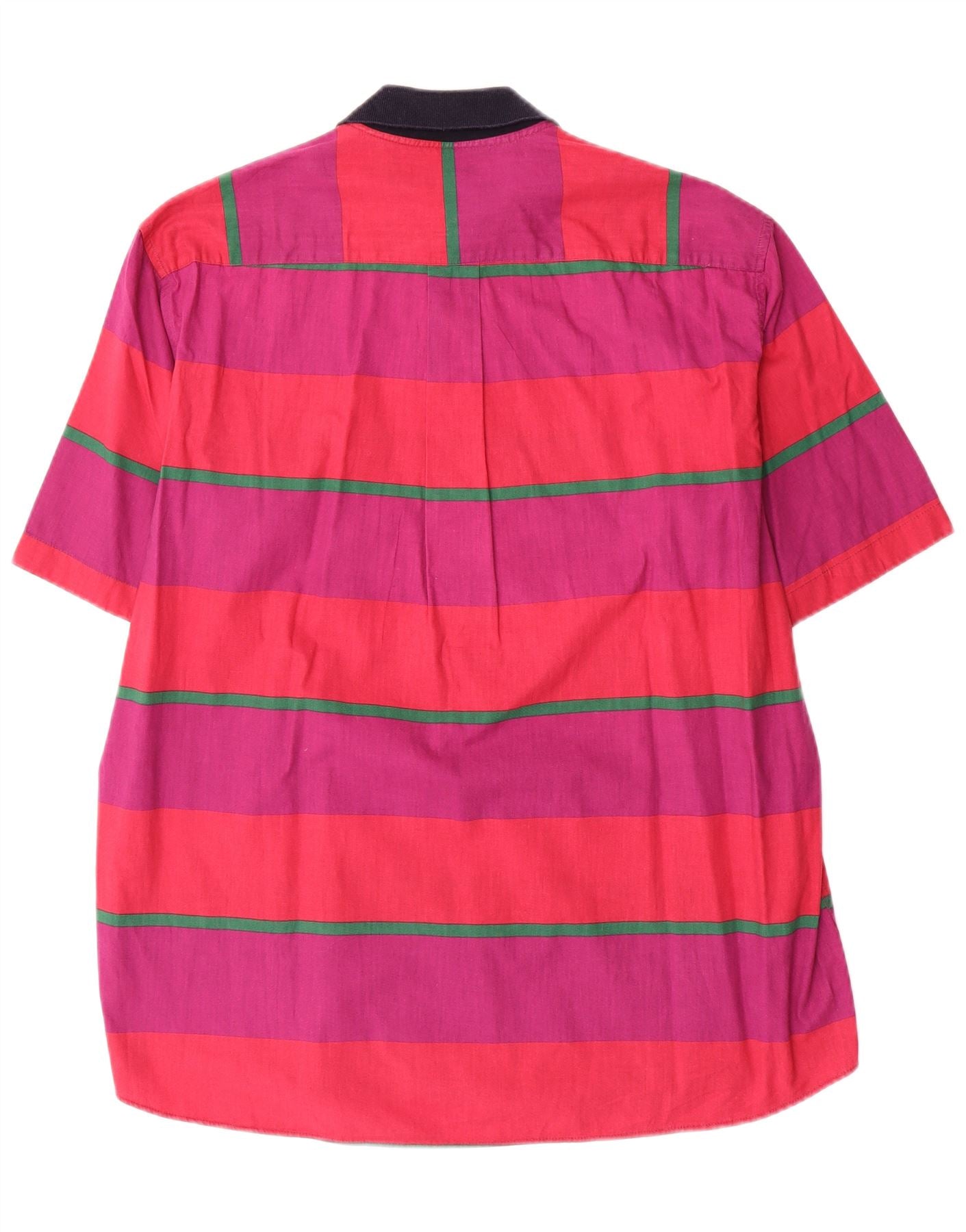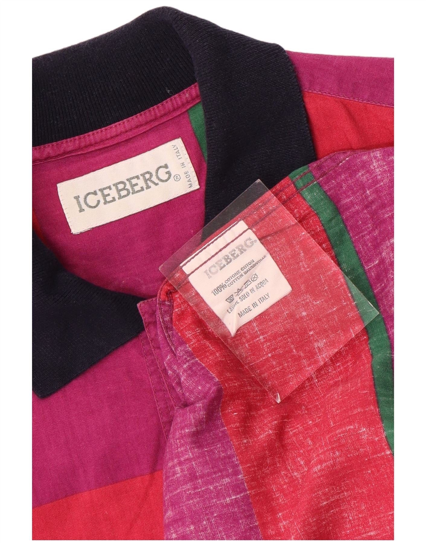 ICEBERG Herren Kurzarm-Pullover-Hemd, groß, lila, gestreift, Baumwolle