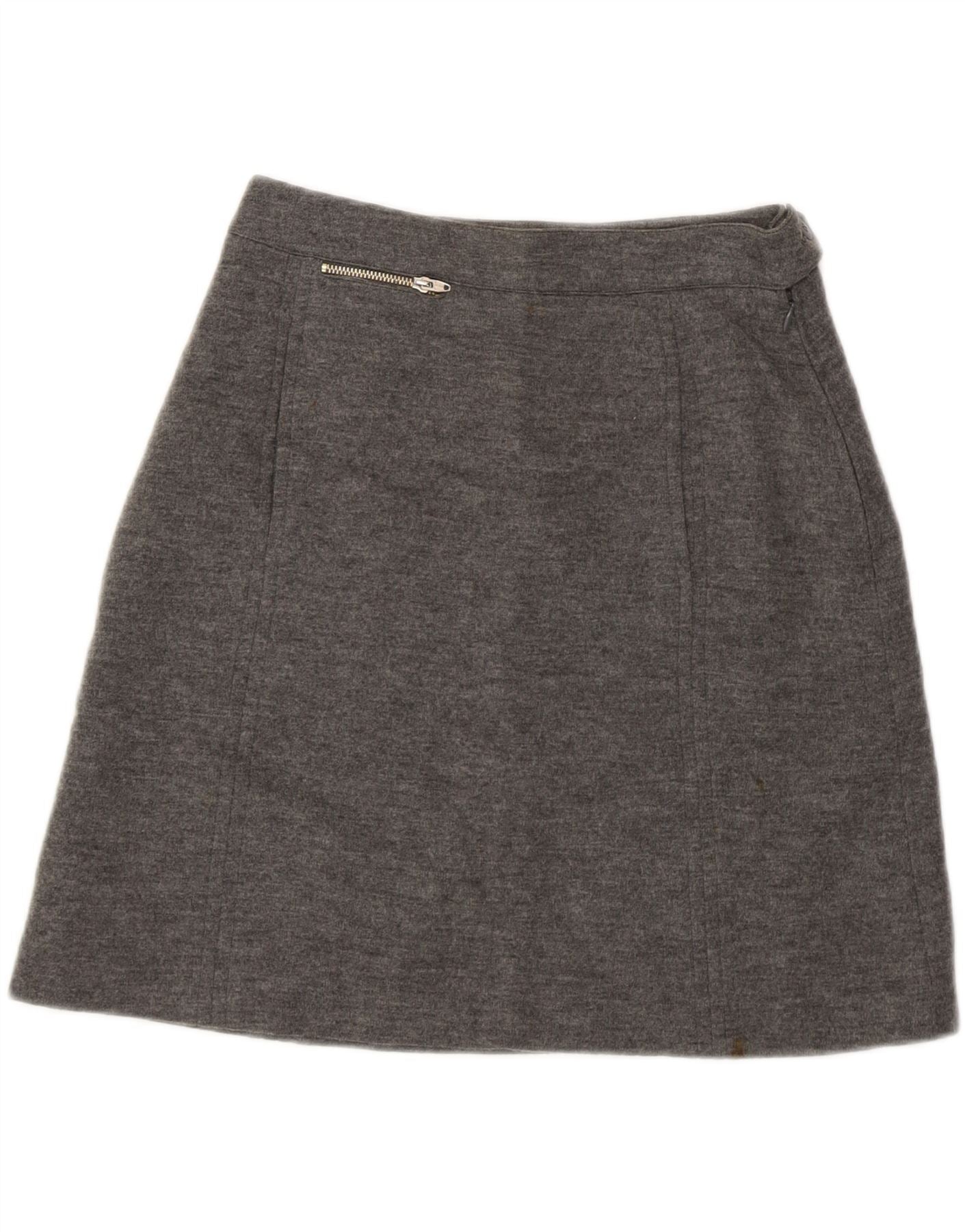 ICEBERG Womens High Waist A-Line Skirt IT 42 Medium W26 Grey New Wool