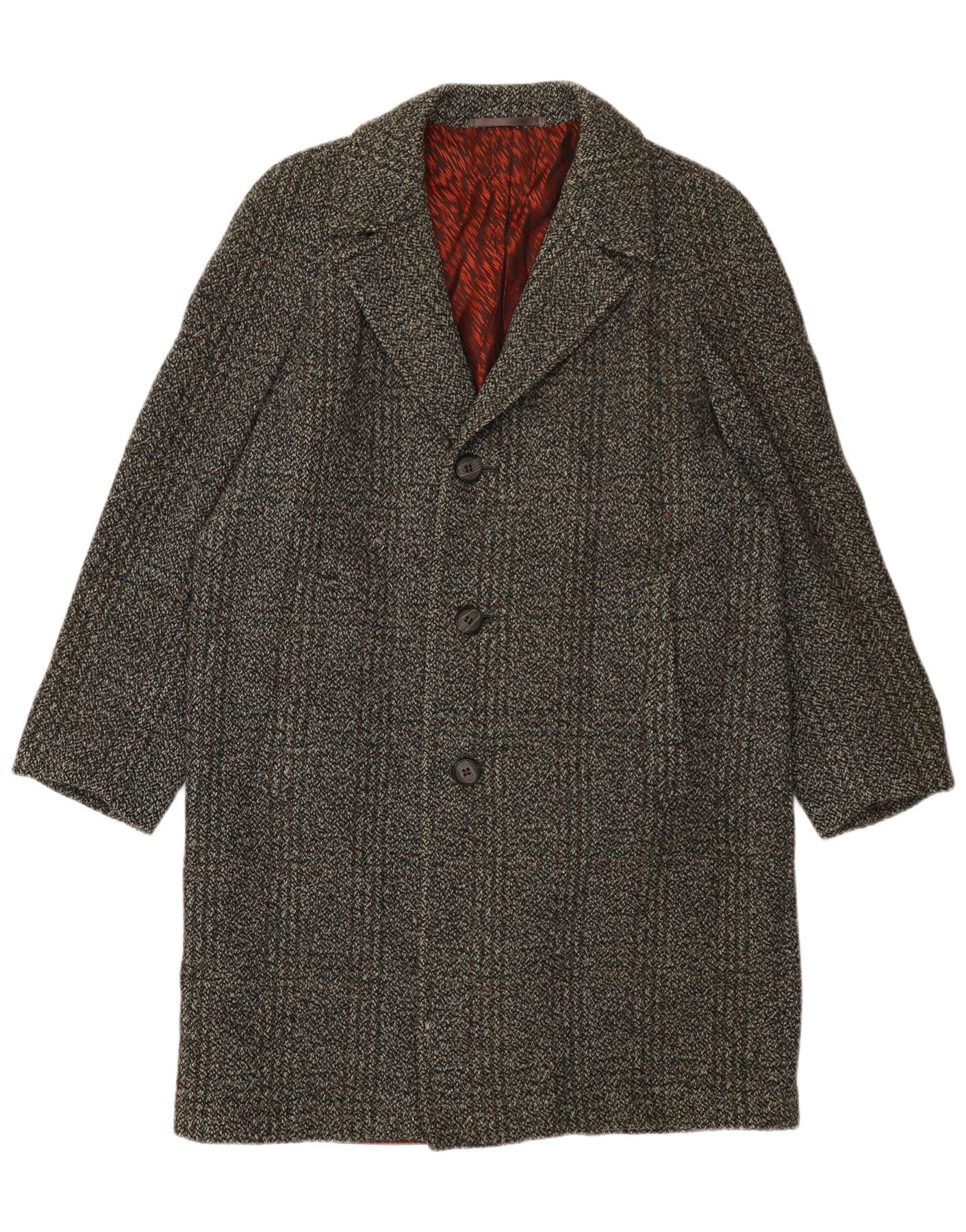 IDEAL Herrenmantel UK 40 Große grau karierte Schurwolle