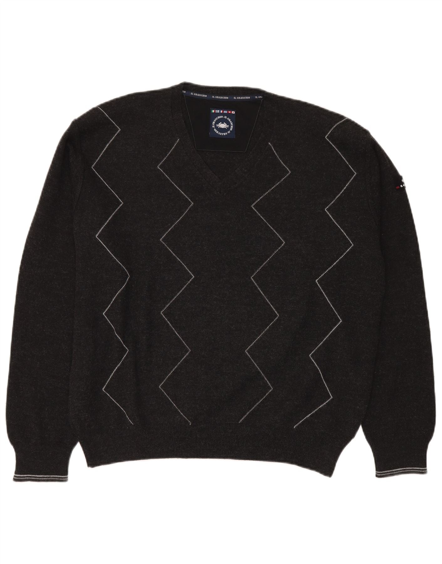 Il Granchio Herren-Pullover mit V-Ausschnitt, groß, graue, geometrische Schurwolle
