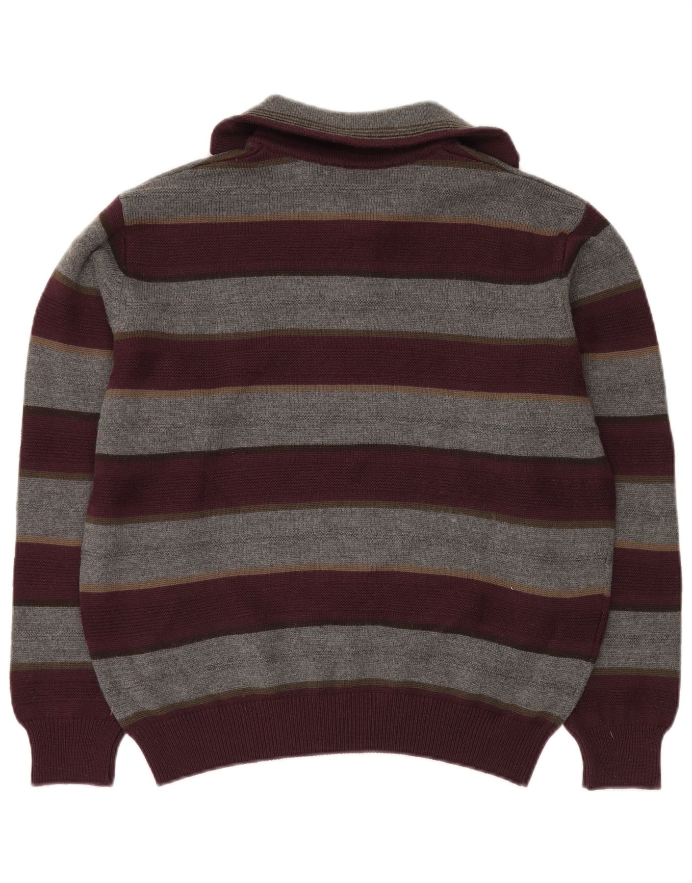 IL GRANCHIO Damen Pullover mit Reißverschluss am Hals UK 18 XL Burgunderrot gestreift