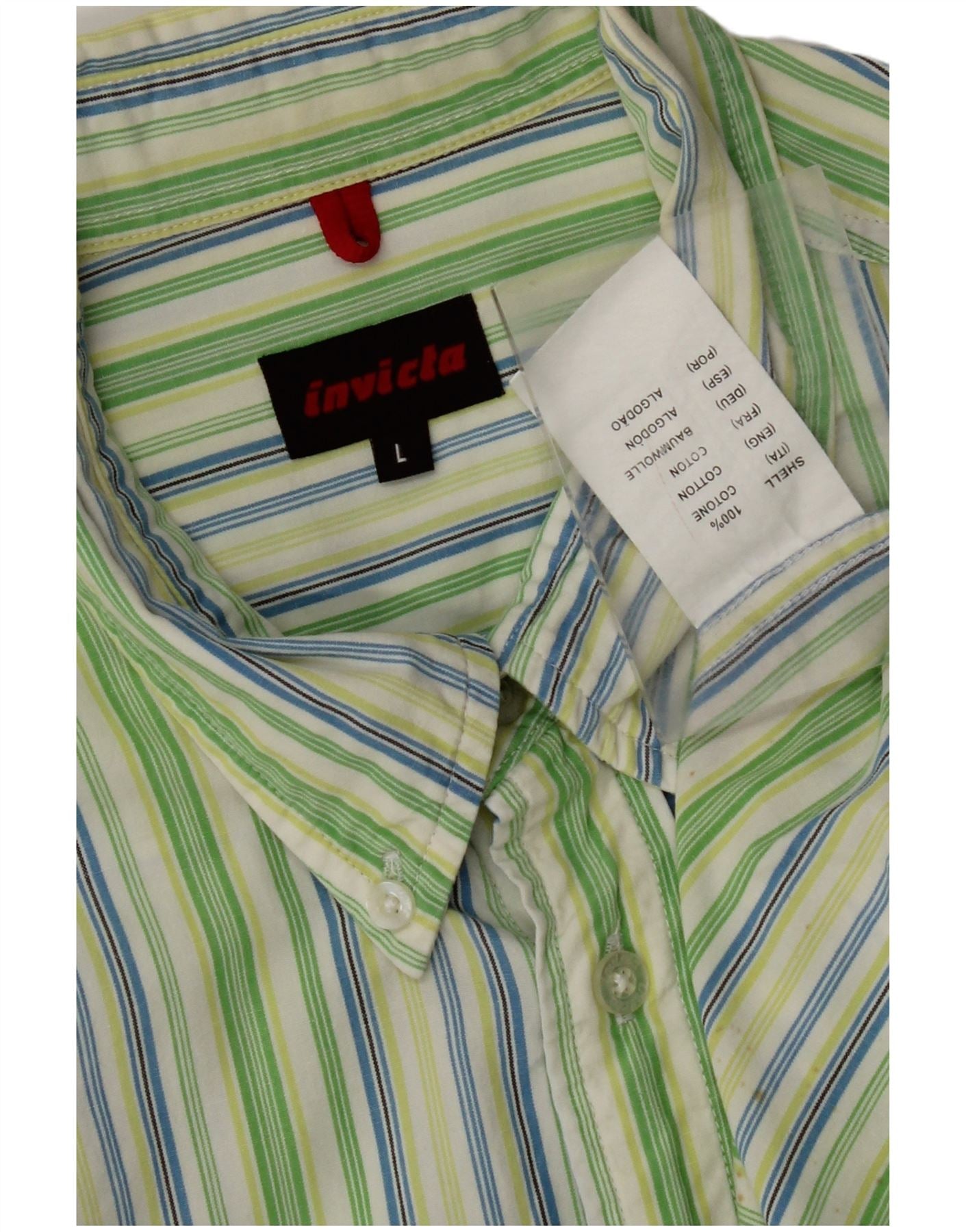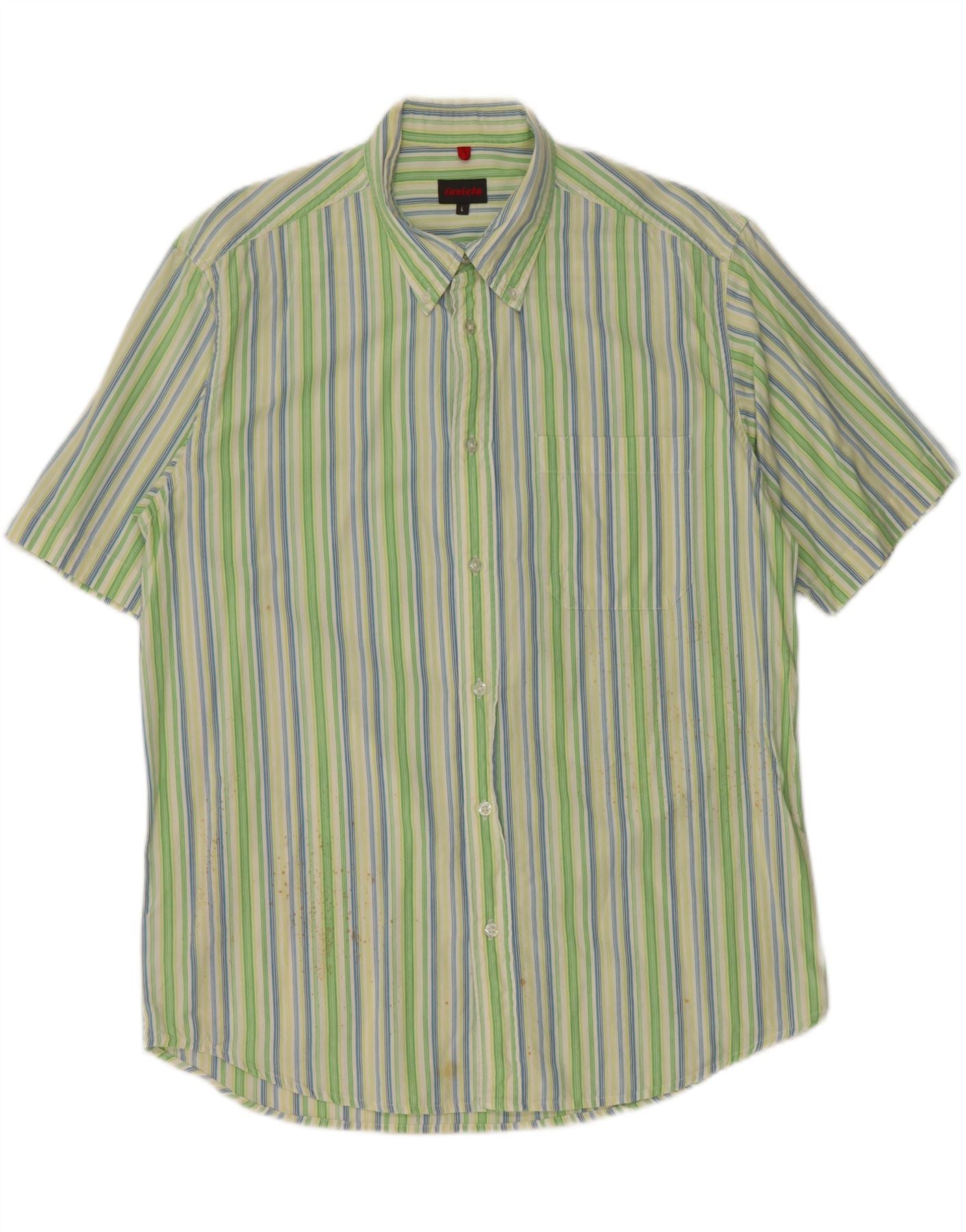 INVICTA Herren-Kurzarmhemd, groß, grün gestreift, Baumwolle