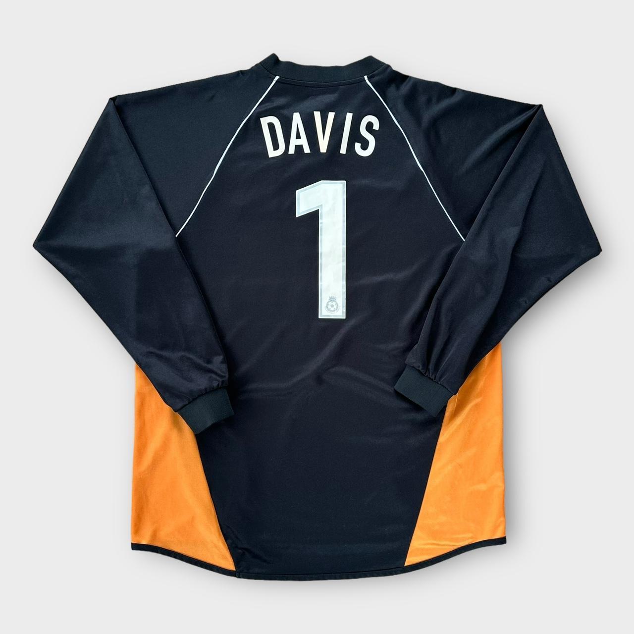 Klassisches Ipswich Town-Torwart-Langarm-Fußballtrikot von Punch mit Davis 1 auf dem Rücken und Powergen-Sponsor auf der Brust