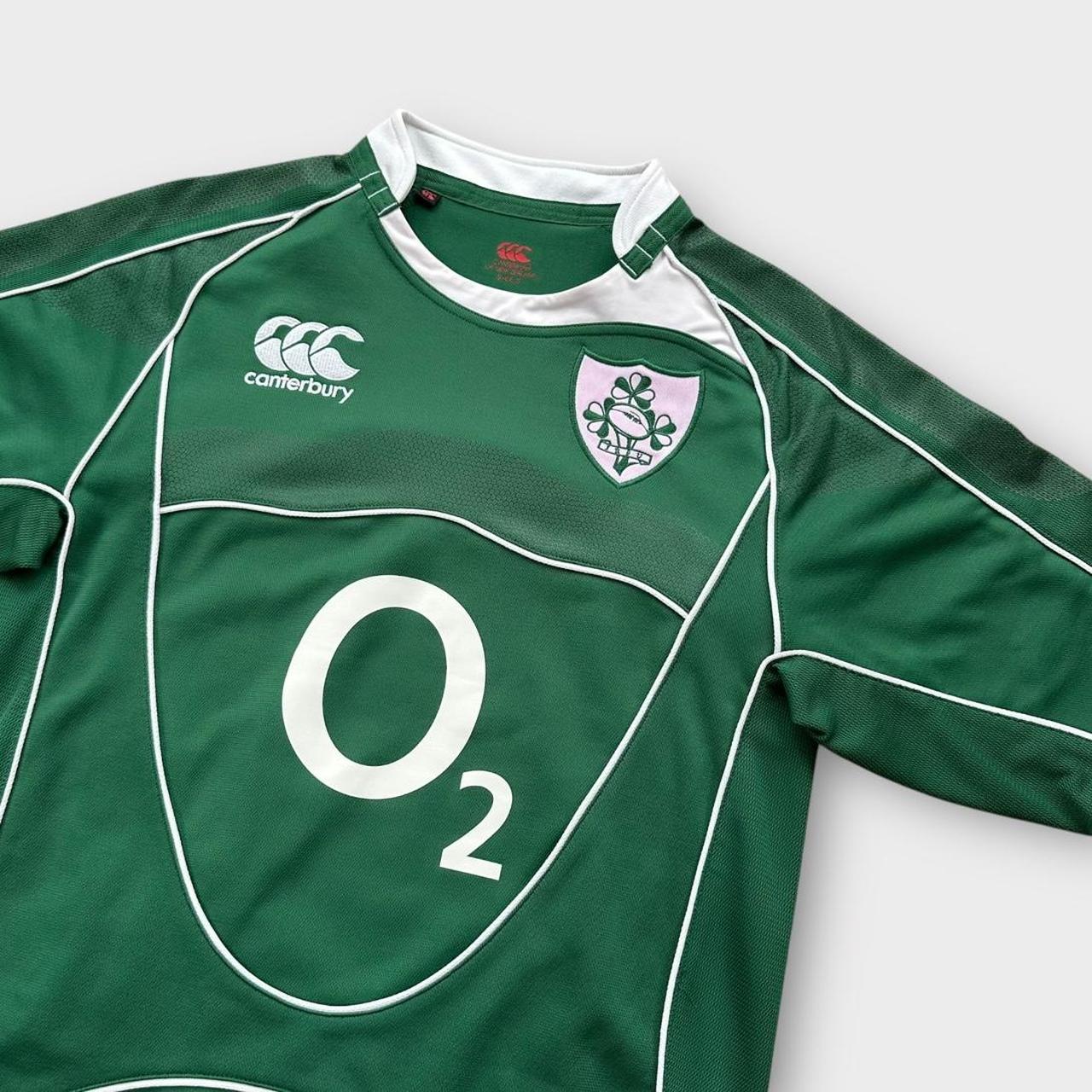 Irland-Rugby-Oberteil von Canterbury aus den frühen 2000er Jahren mit gestickten Logos und Sponsor auf der Brust