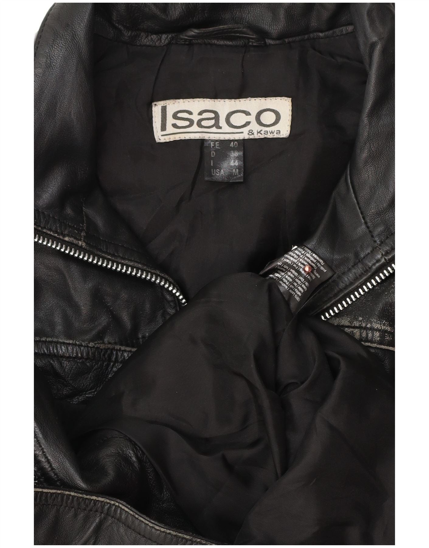 Isaco & Kawa Damen Biker-Lederjacke IT 44 Mittelschwarzes Leder
