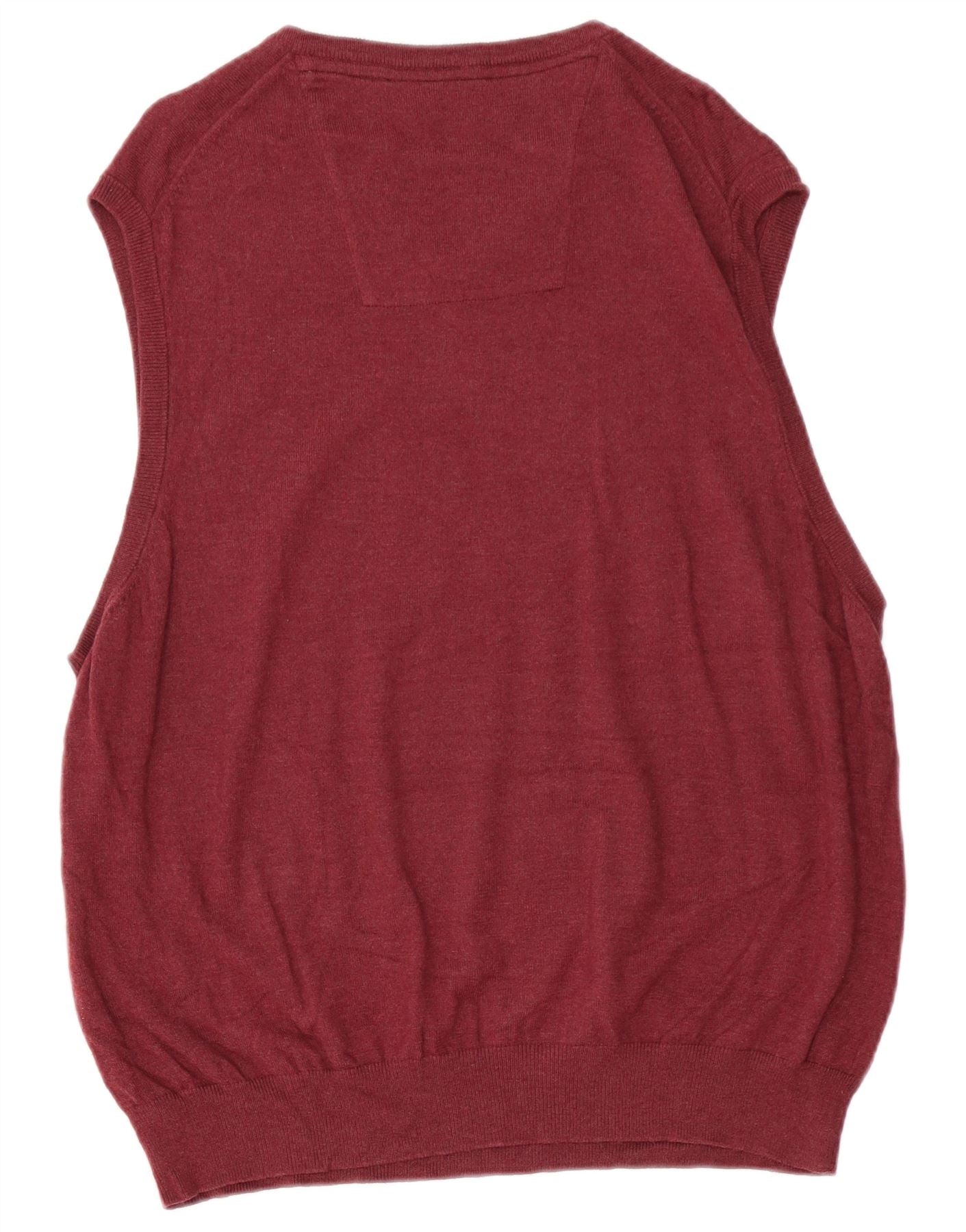 - AI Description: This Izod mens sleeveless jumper is crafted from a fine knit fabric in a rich burgundy hue. The classic V-neckline offers a smart, clean-cut appeal. Its pullover design ensures effortless wear. A regular fit provides comfortable layering and a timeless silhouette. The ribbed hem and armholes add subtle structural detail. This piece is ideal for versatile styling.