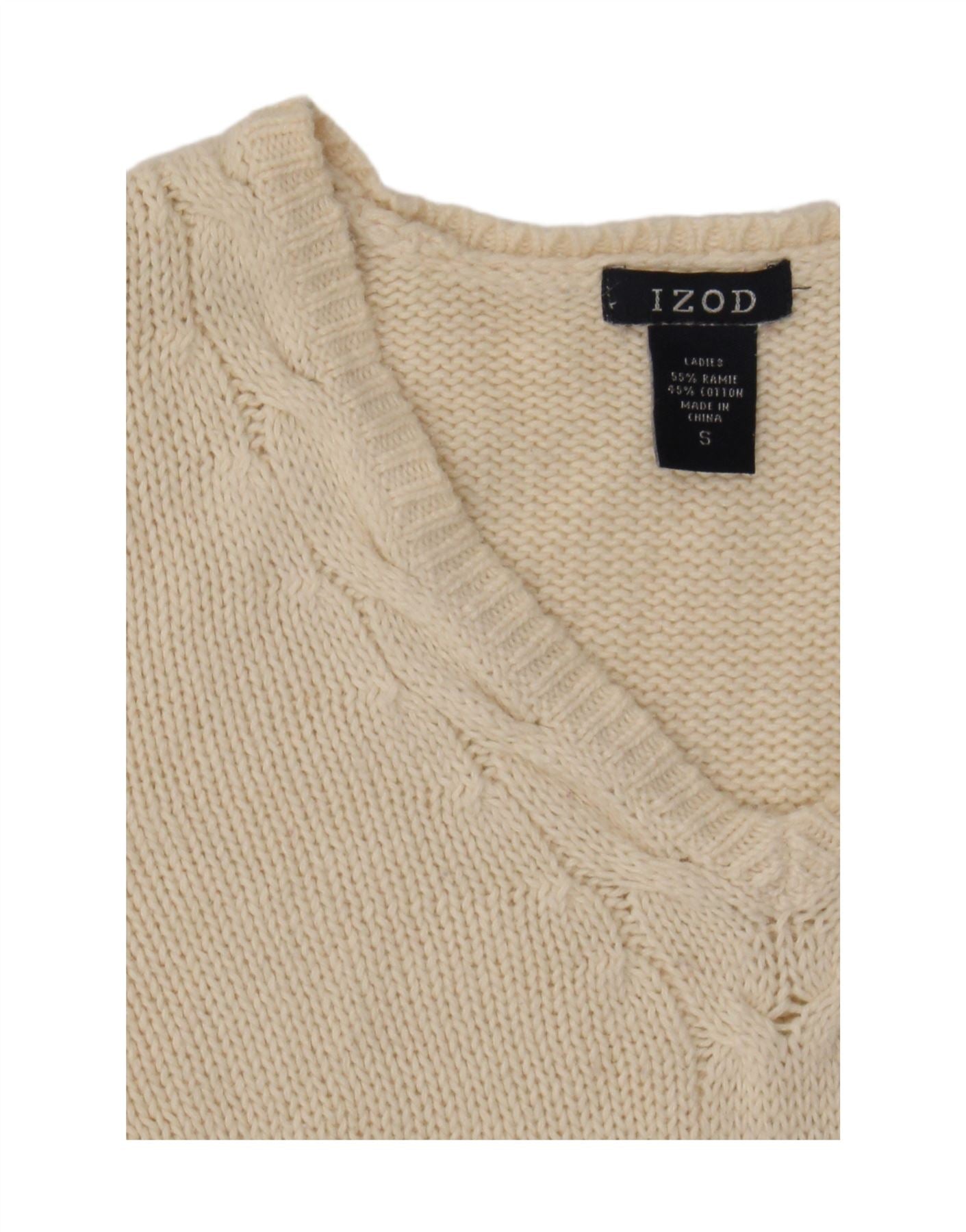 Izod Damen-Pullover mit V-Ausschnitt, Gr. 10, Größe S, gebrochenes Weiß, Ramie