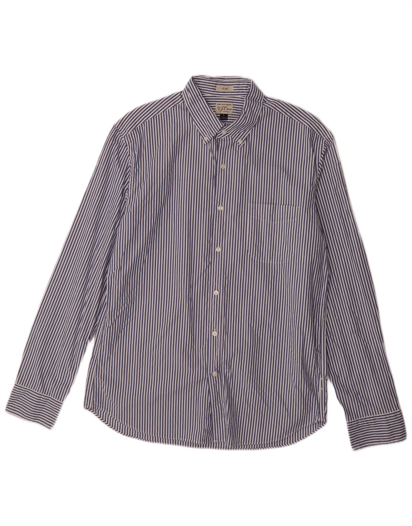 J. CREW Slim-Hemd für Herren, groß, marineblau, Nadelstreifen-Baumwolle