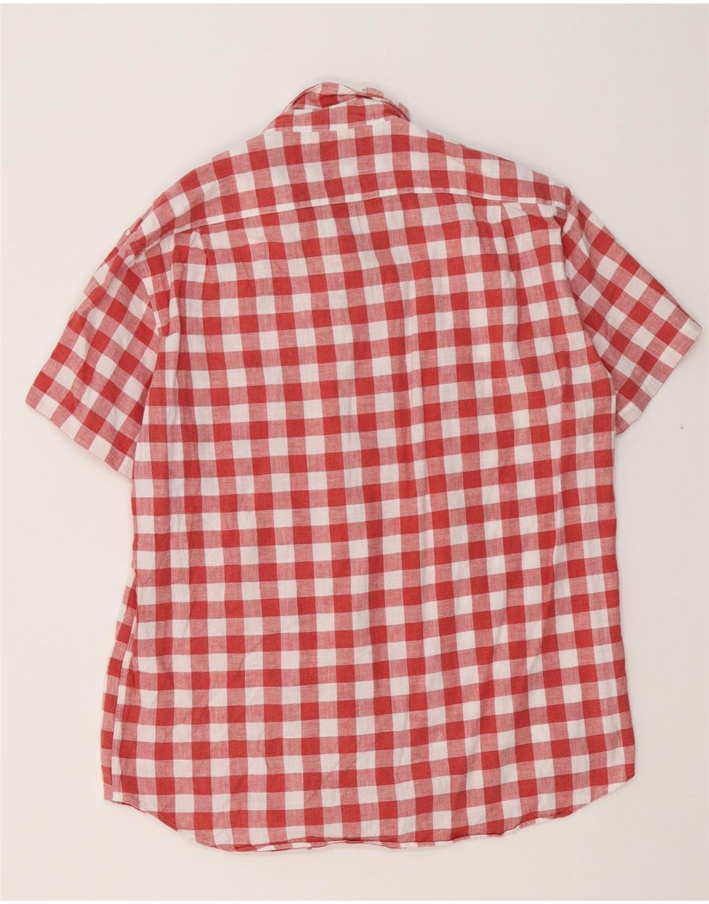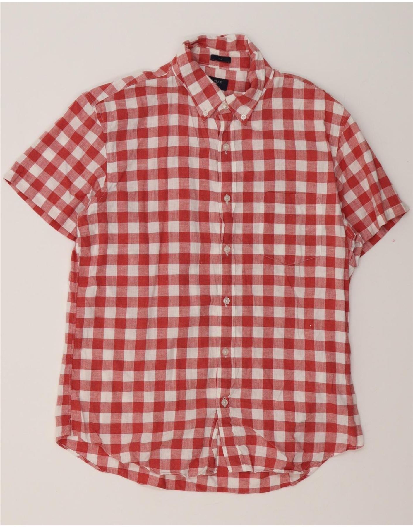 J. CREW Herren-Hemd, schmal, kurzärmelig, groß, rot, kariert, Baumwolle