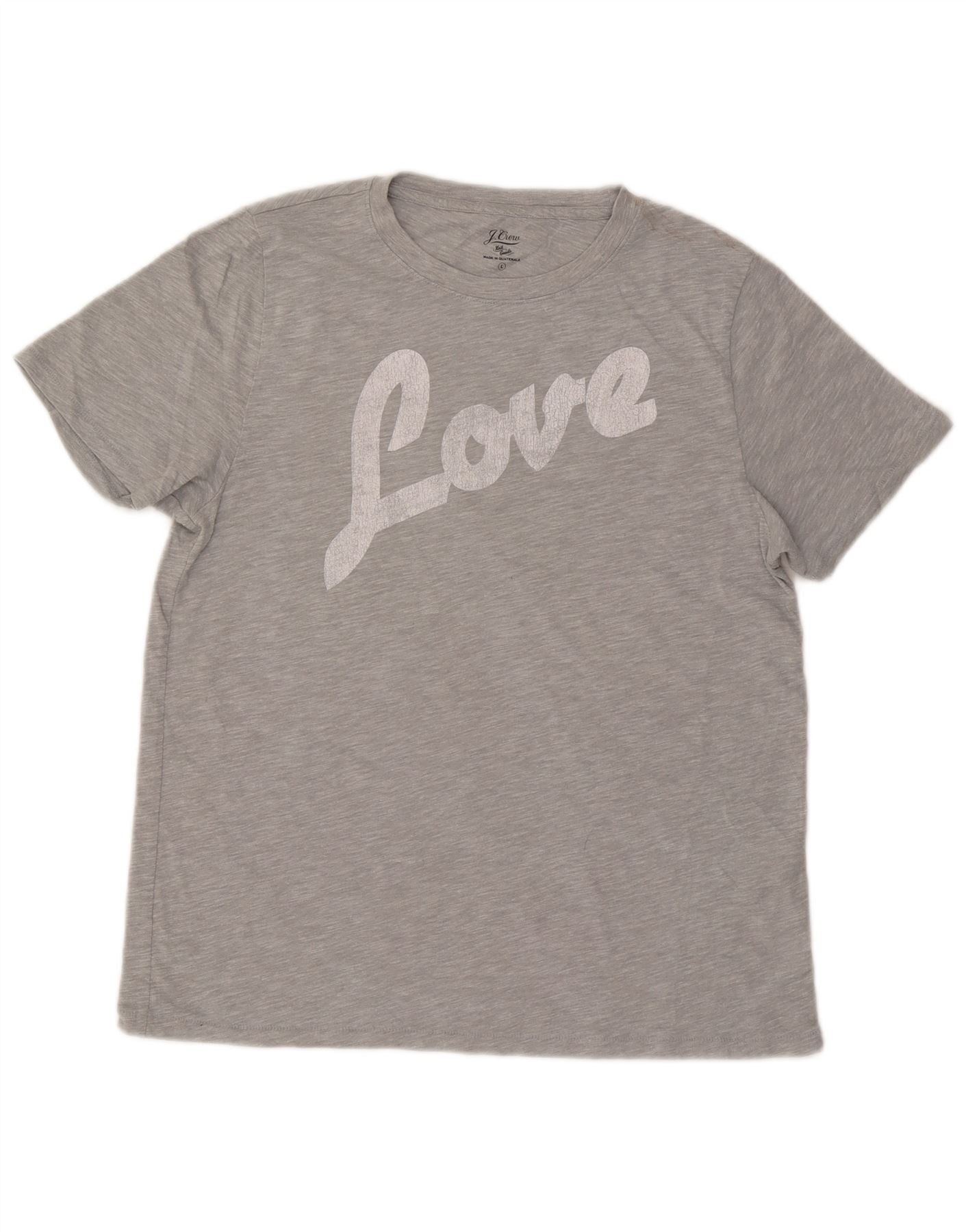 J. CREW Damen Grafik-T-Shirt-Oberteil UK 16 Large Grau Baumwolle