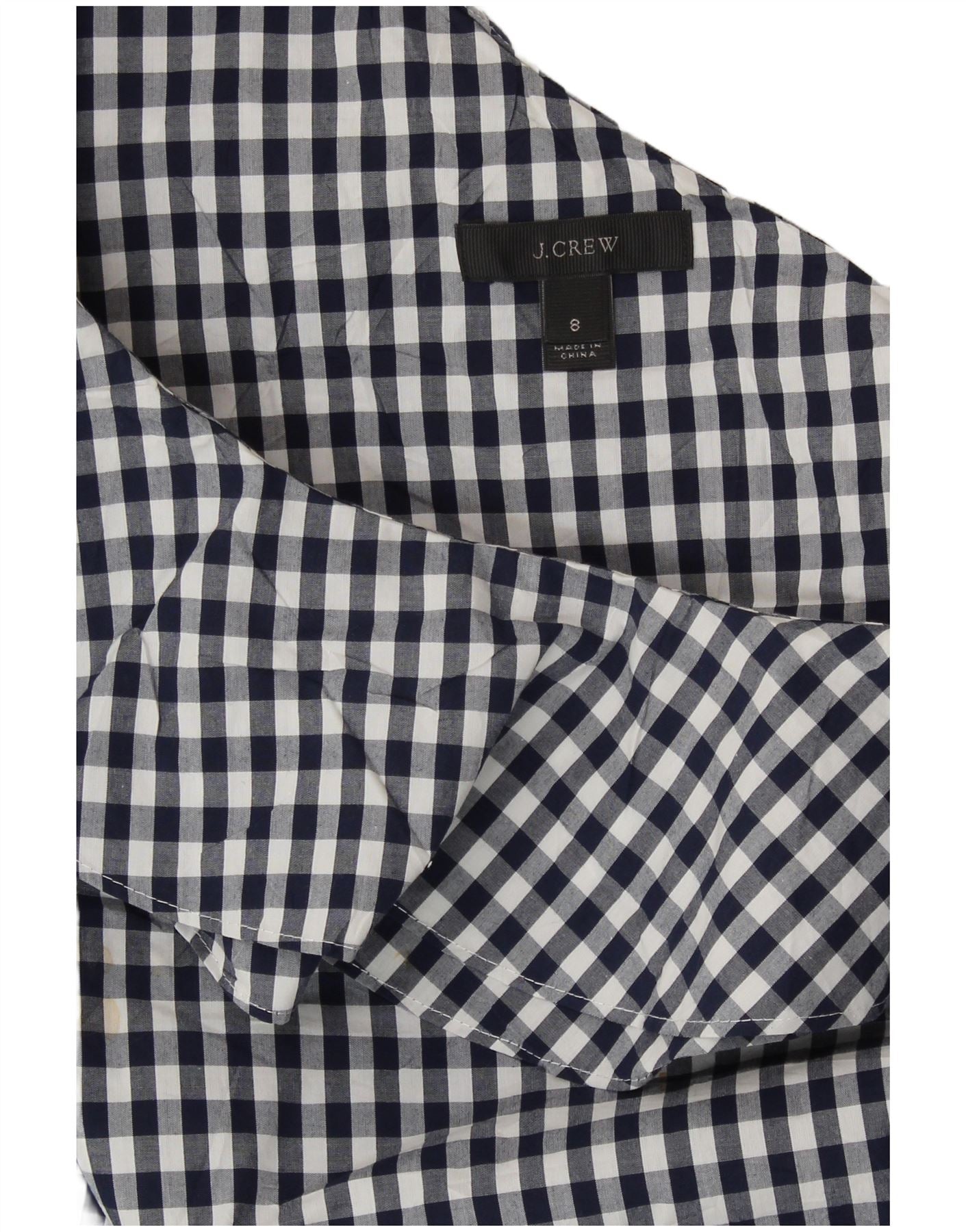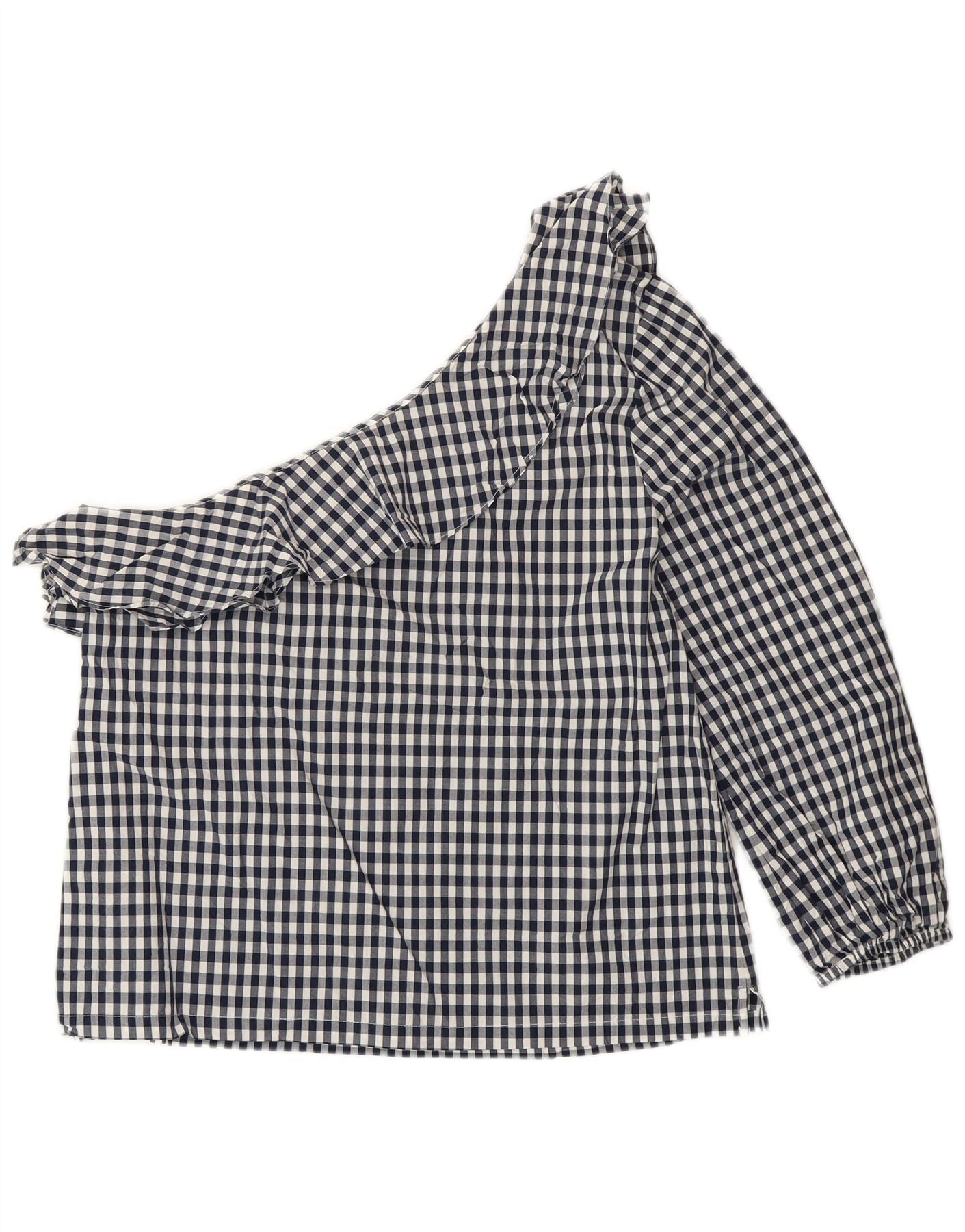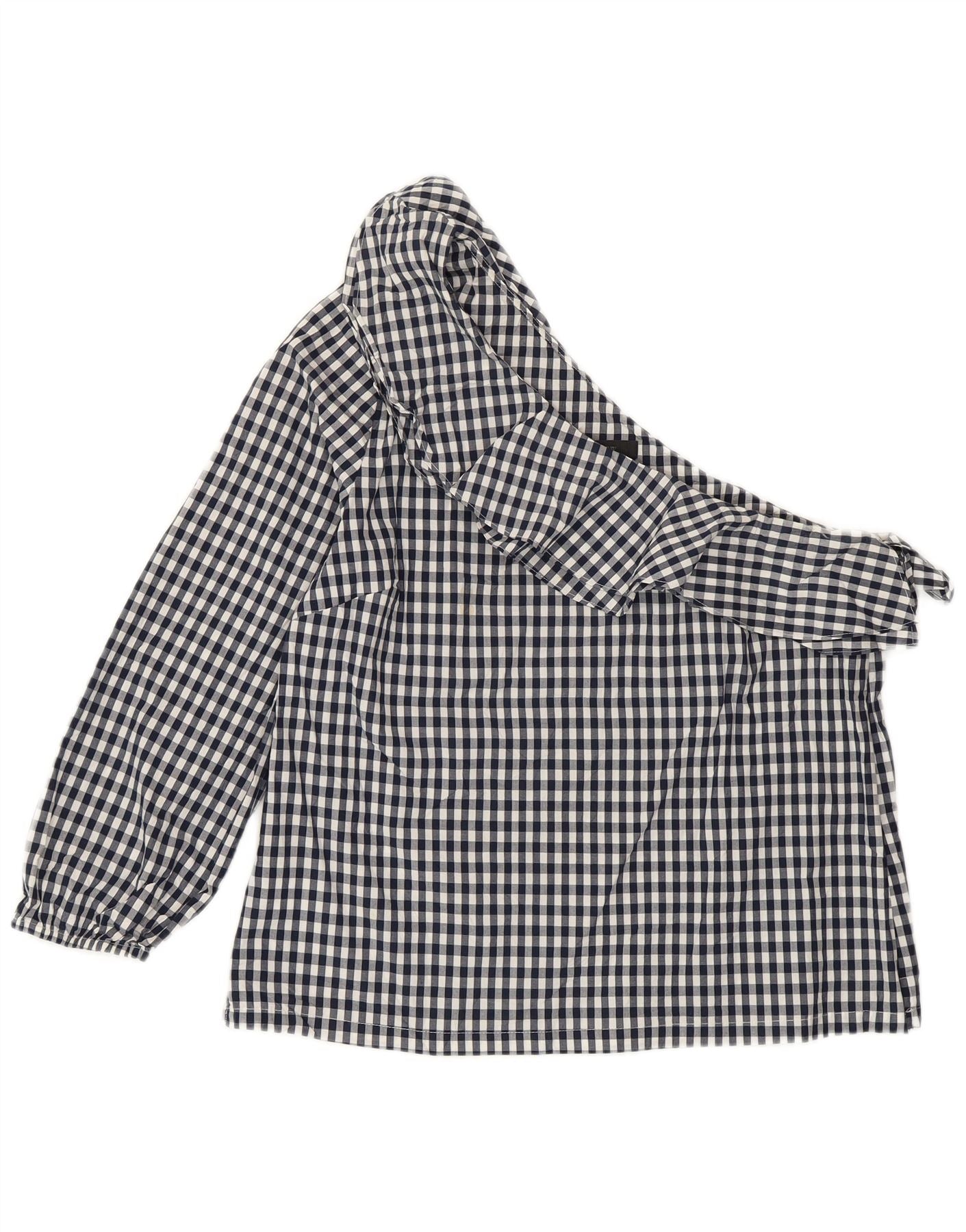 J. CREW One-Shoulder-Oberteil für Damen, US 8, mittlere marineblaue Gingham-Baumwolle