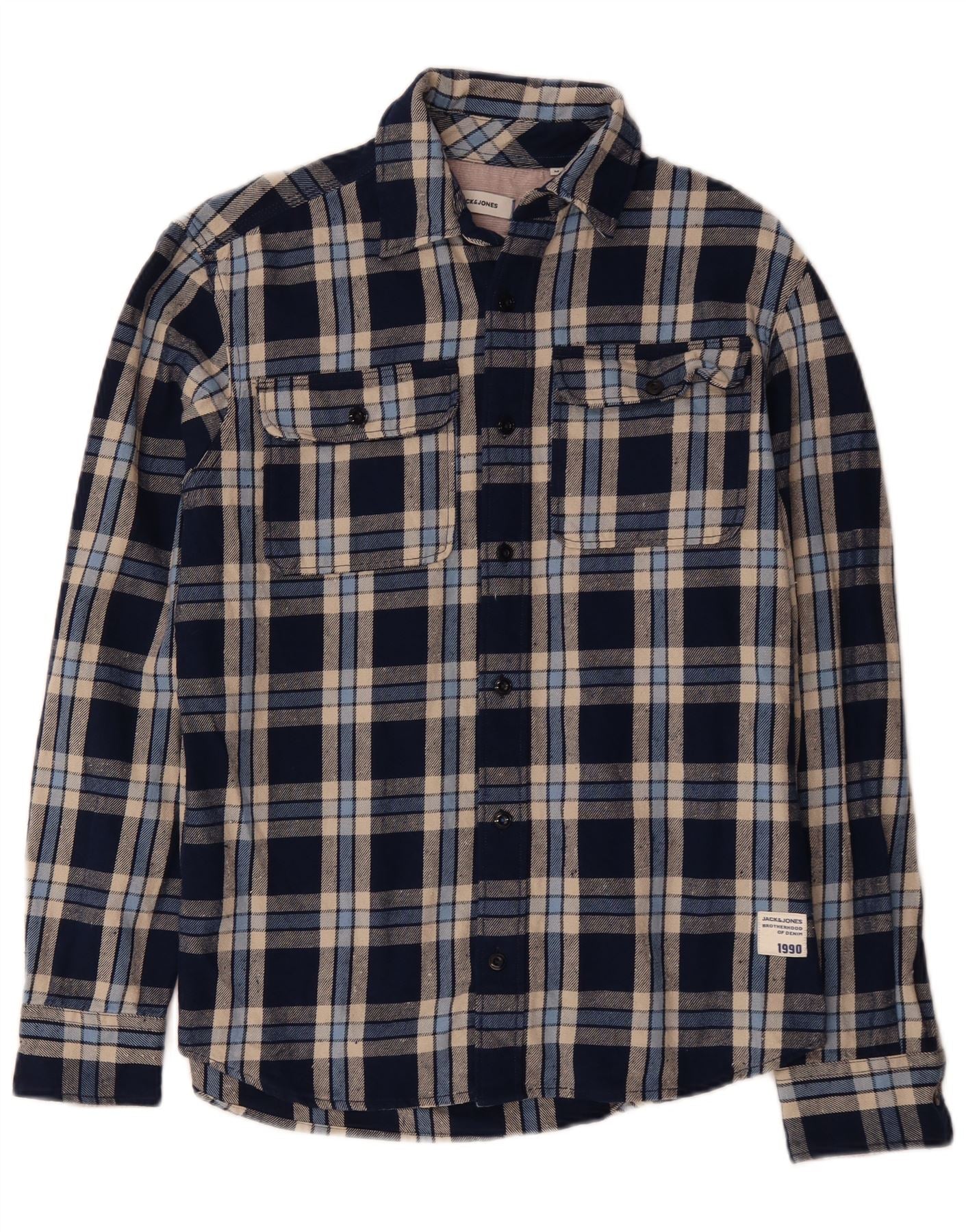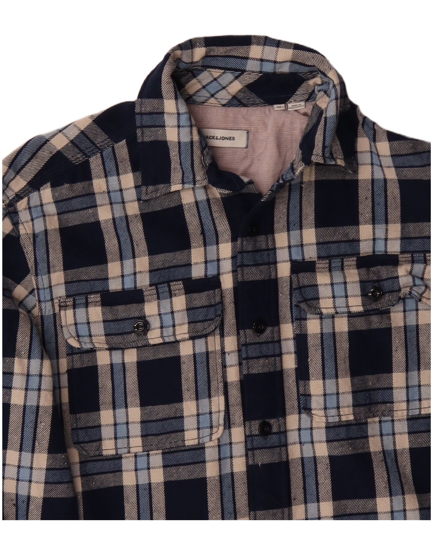 JACK & JONES Herren-Flanellhemd, mittelblau, kariert, Baumwolle