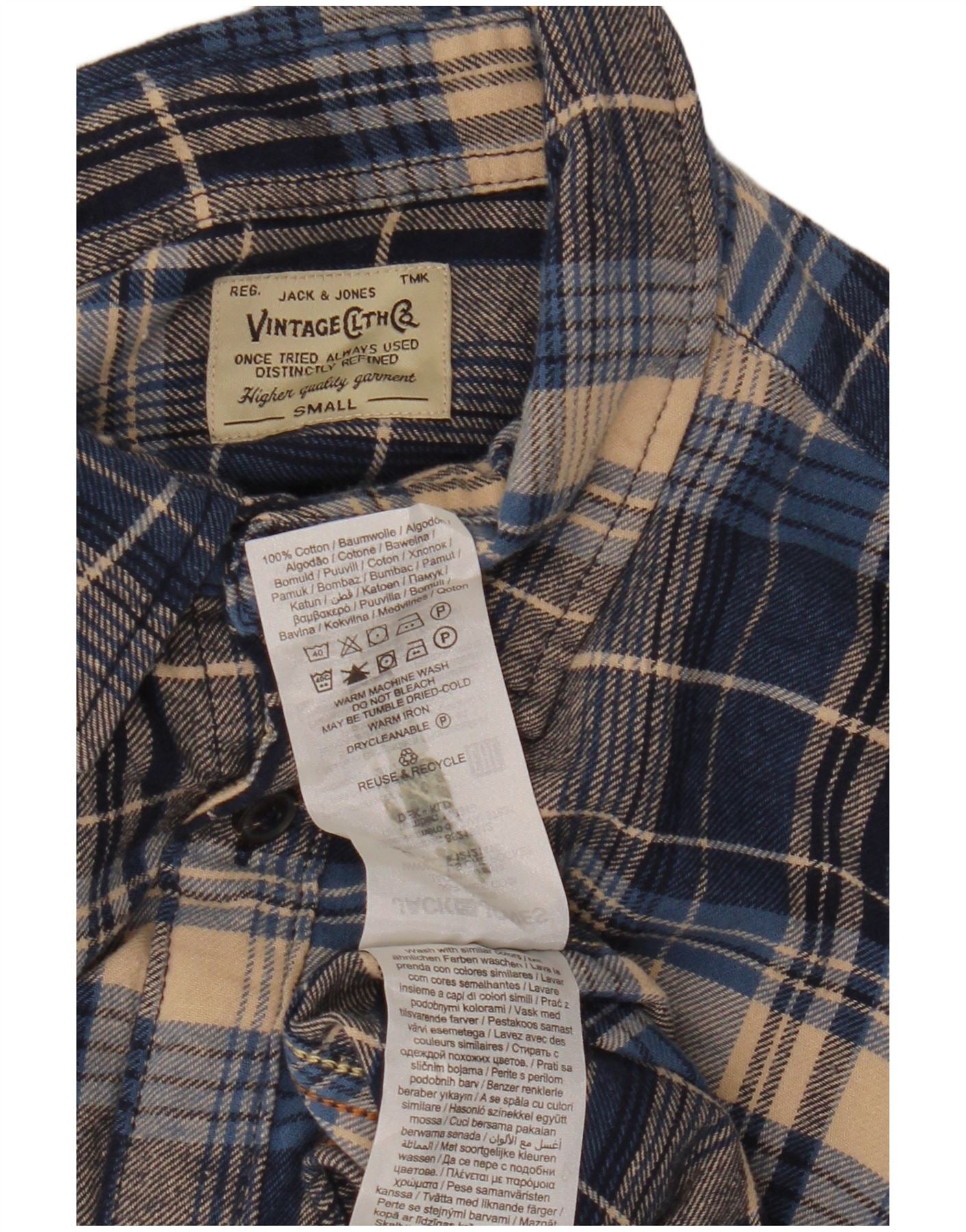 JACK & JONES Herren-Flanellhemd, klein, blau kariert, Baumwolle