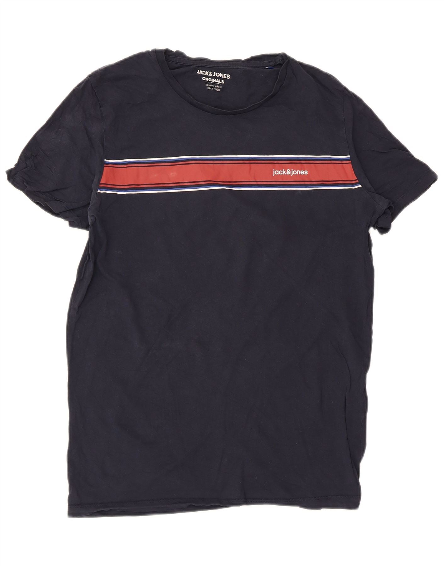 Jack & Jones Herren-T-Shirt mit Grafik, mittelgroß, marineblau, gestreift, Baumwolle