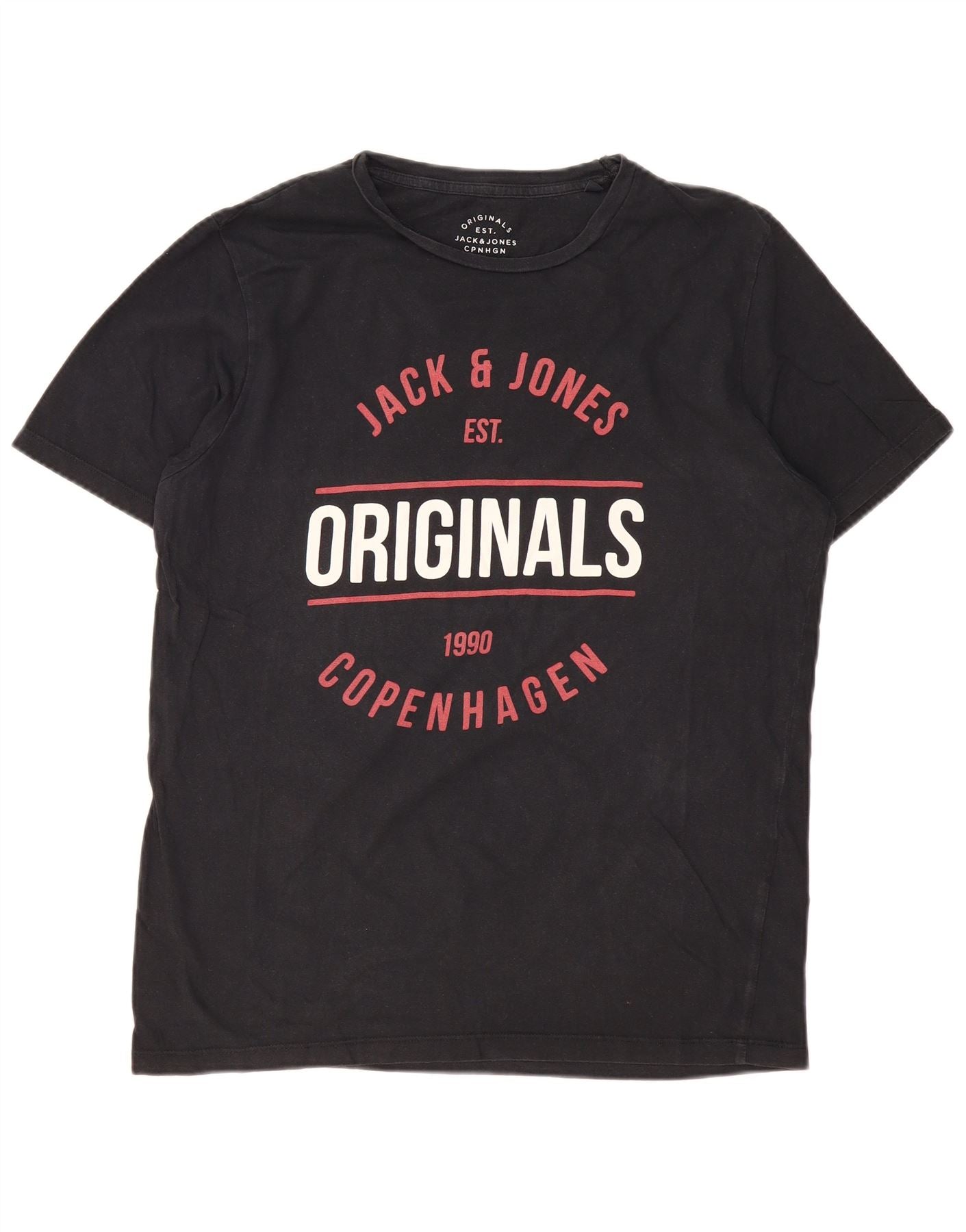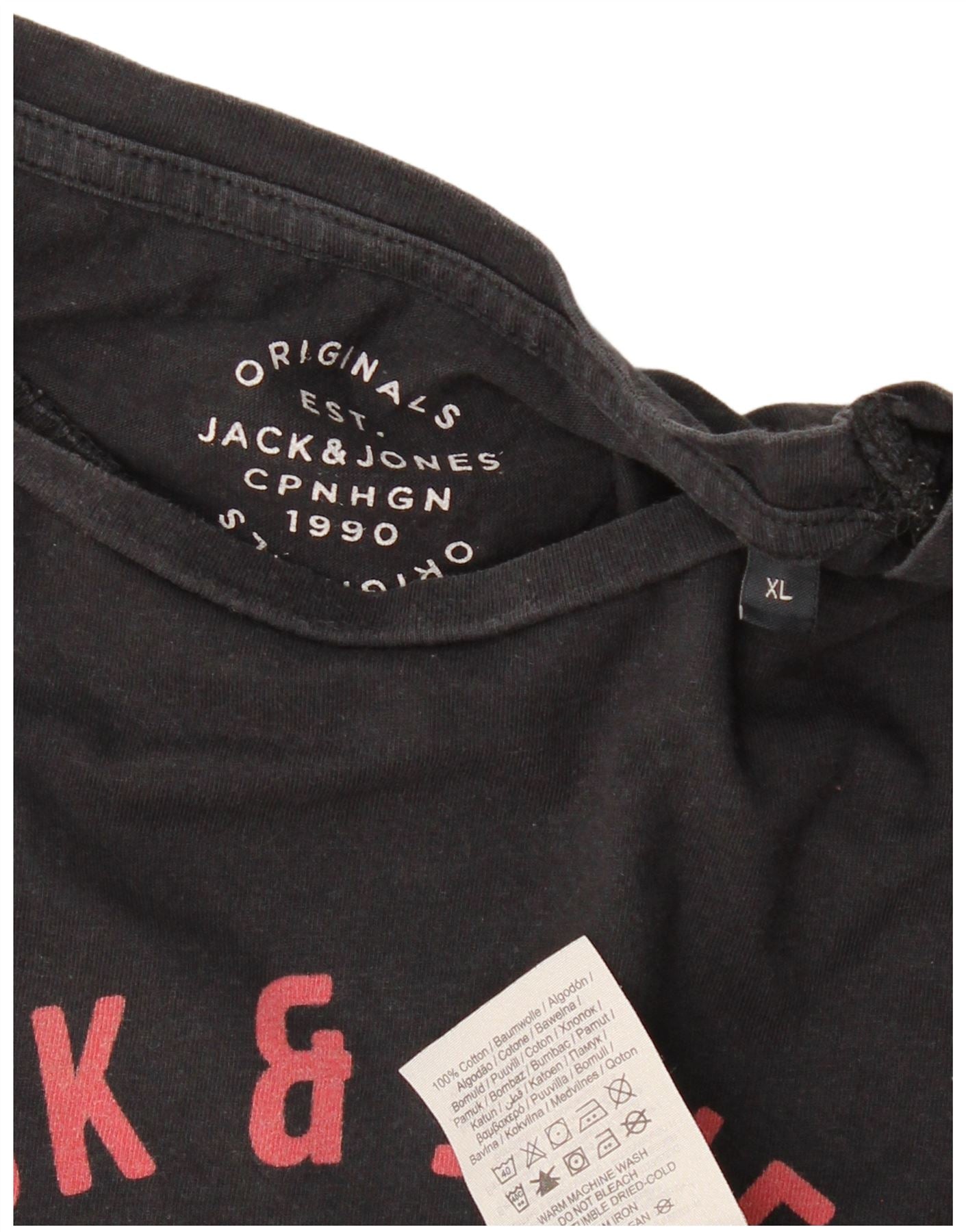 JACK & JONES Herren Originals Grafik-T-Shirt-Oberteil XL aus schwarzer Baumwolle