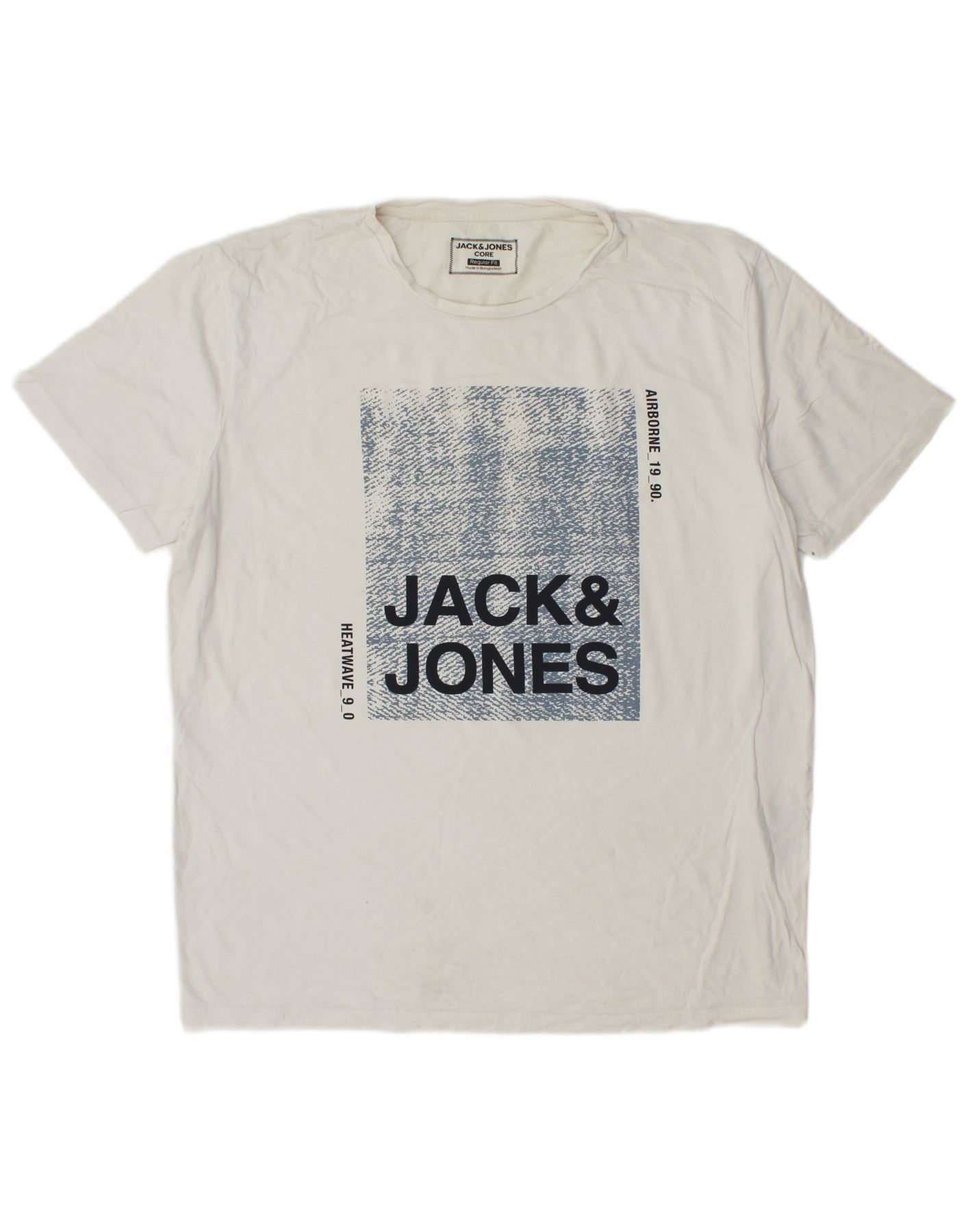 JACK & JONES Herren-T-Shirt mit normaler Passform, Grafik, XL, weiße Baumwolle