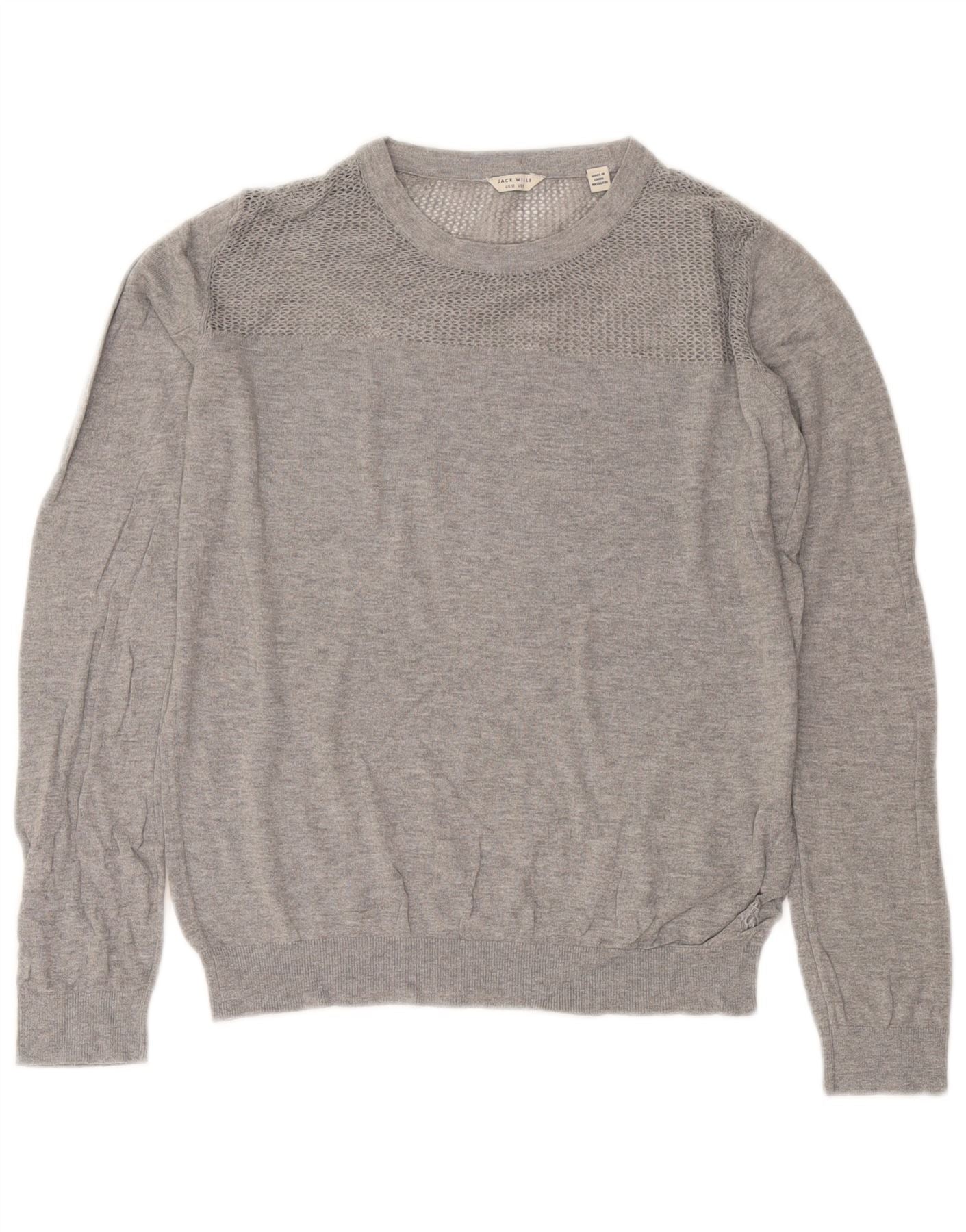 Jack Wills Damen-Pullover mit Rundhalsausschnitt, UK 12, mittelgraue Baumwolle