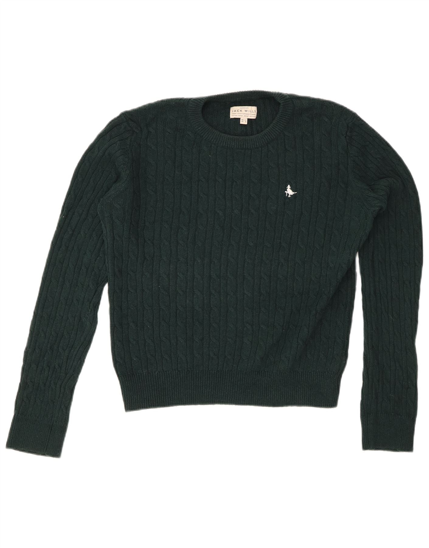 JACK WILLS Damen Crop Crew Neck Pullover Pullover UK 12 Mittelgrüne Wolle