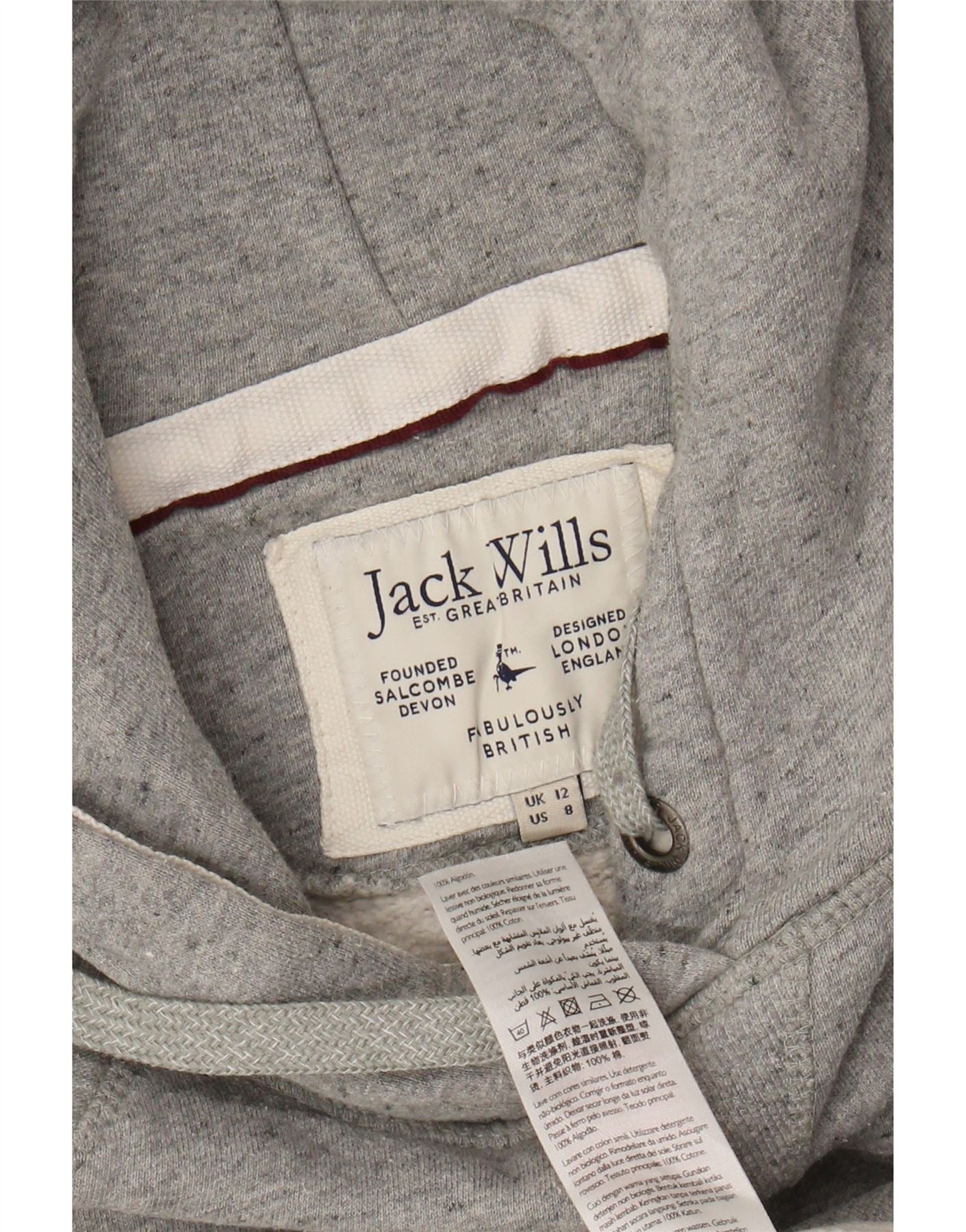 JACK WILLS Damen-Kapuzenpullover mit Grafik, UK 12, Mittelgrau, Farbblock