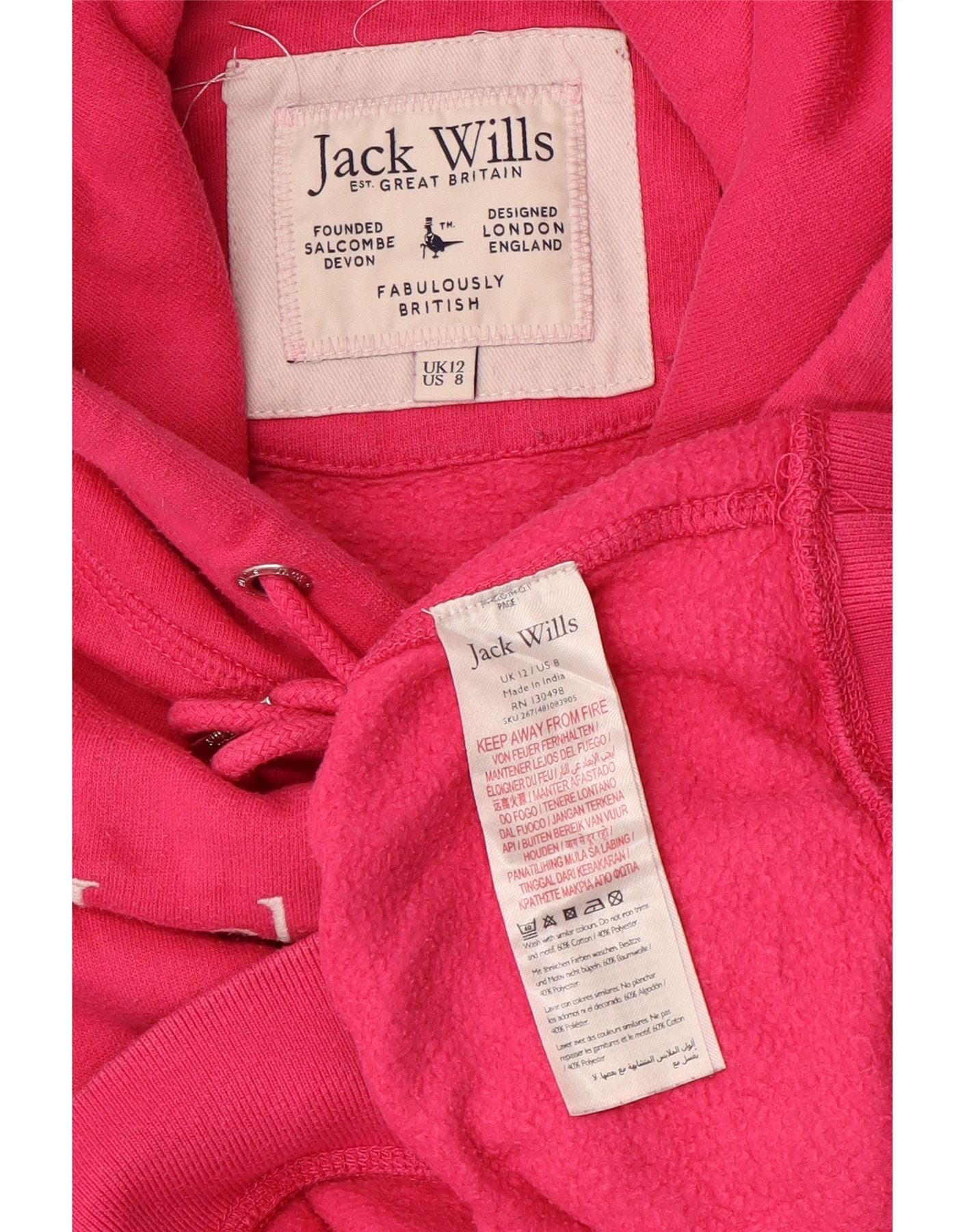 JACK WILLS Damen-Pullover mit übergroßem, bauchfreiem Grafik-Kapuzenpullover, Gr. 12, Mittelrosa