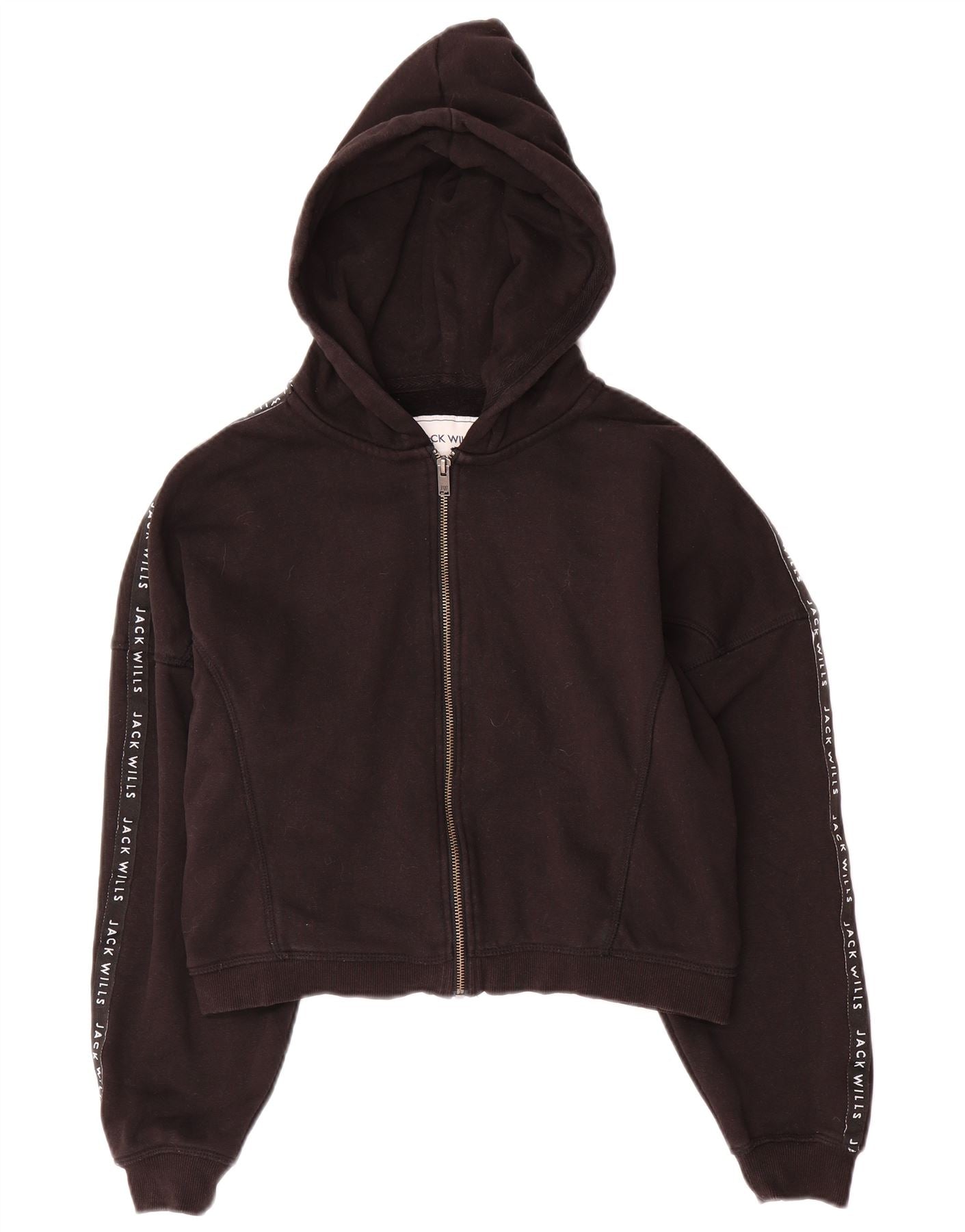 JACK WILLS Damen Übergroßer Crop Zip Hoodie Pullover UK 10 Small Schwarz