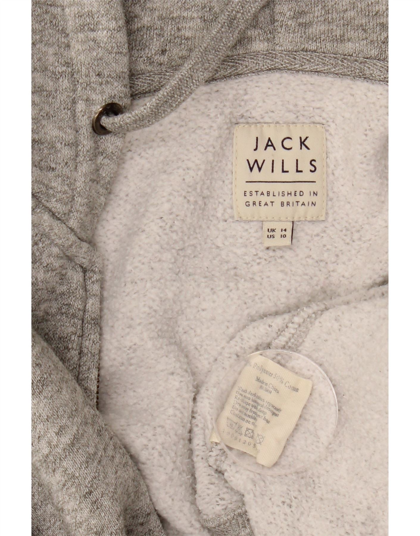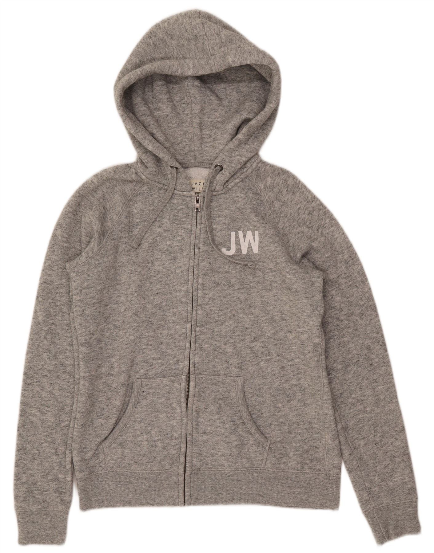 JACK WILLS Damen-Kapuzenpullover mit Reißverschluss, UK 14, großes grau geflecktes Polyester