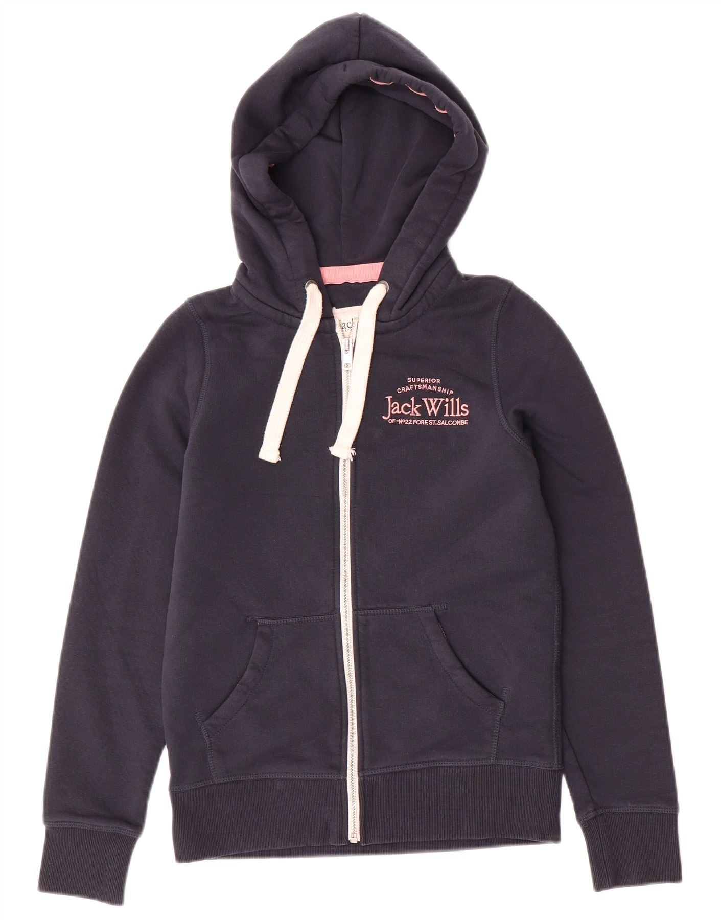 JACK WILLS Damen Zip Hoodie Pullover UK 4 XS Marineblau Baumwolle