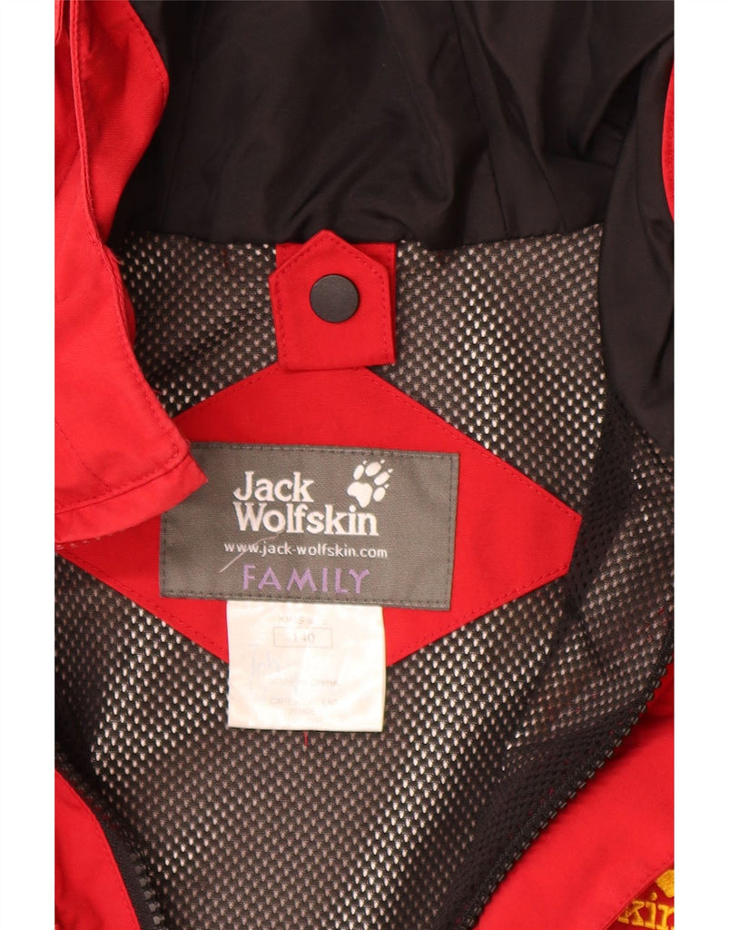 JACK WOLFSKIN Boys Graphic Hooded Rain Jacket 10-11 Years Red Colourblock