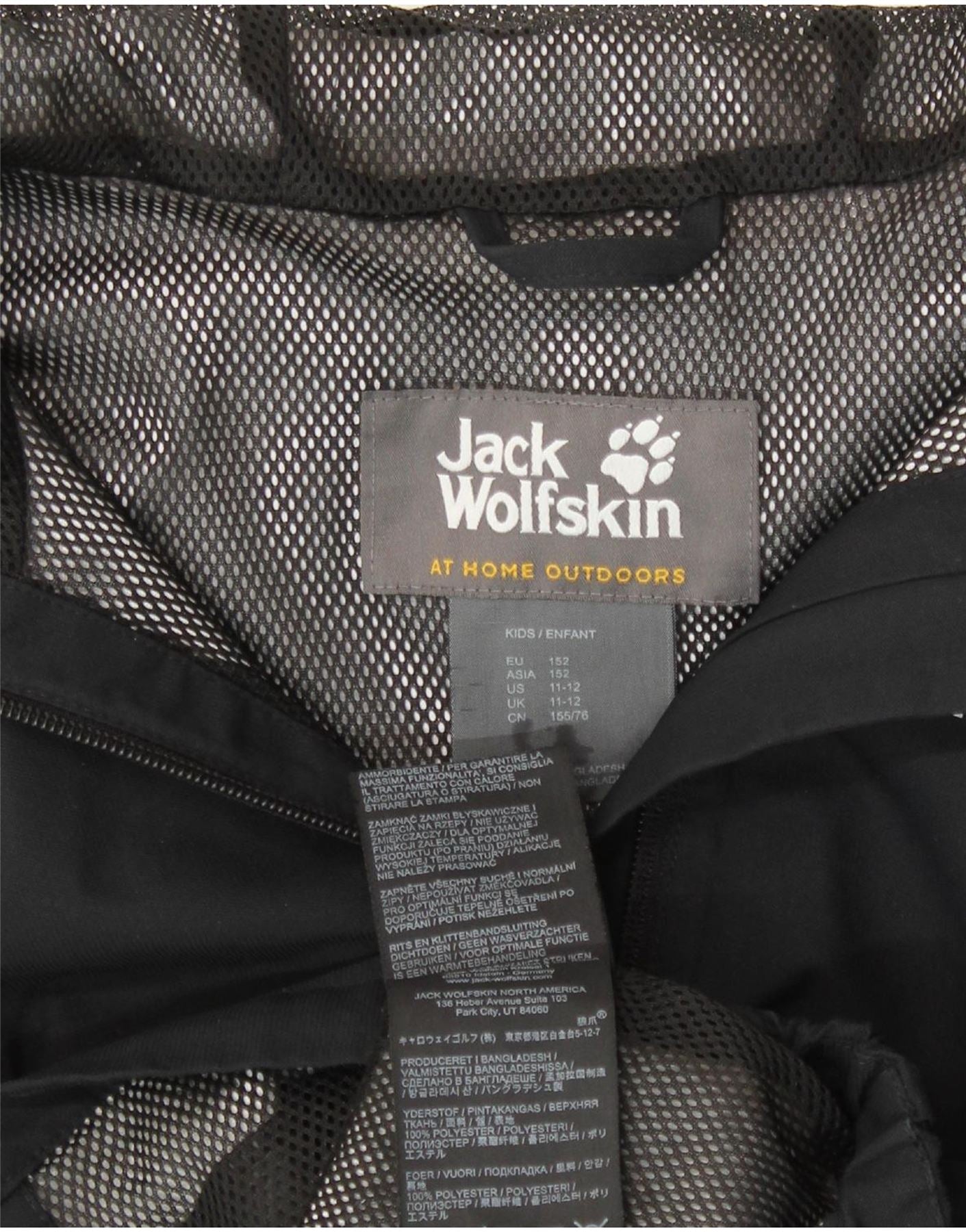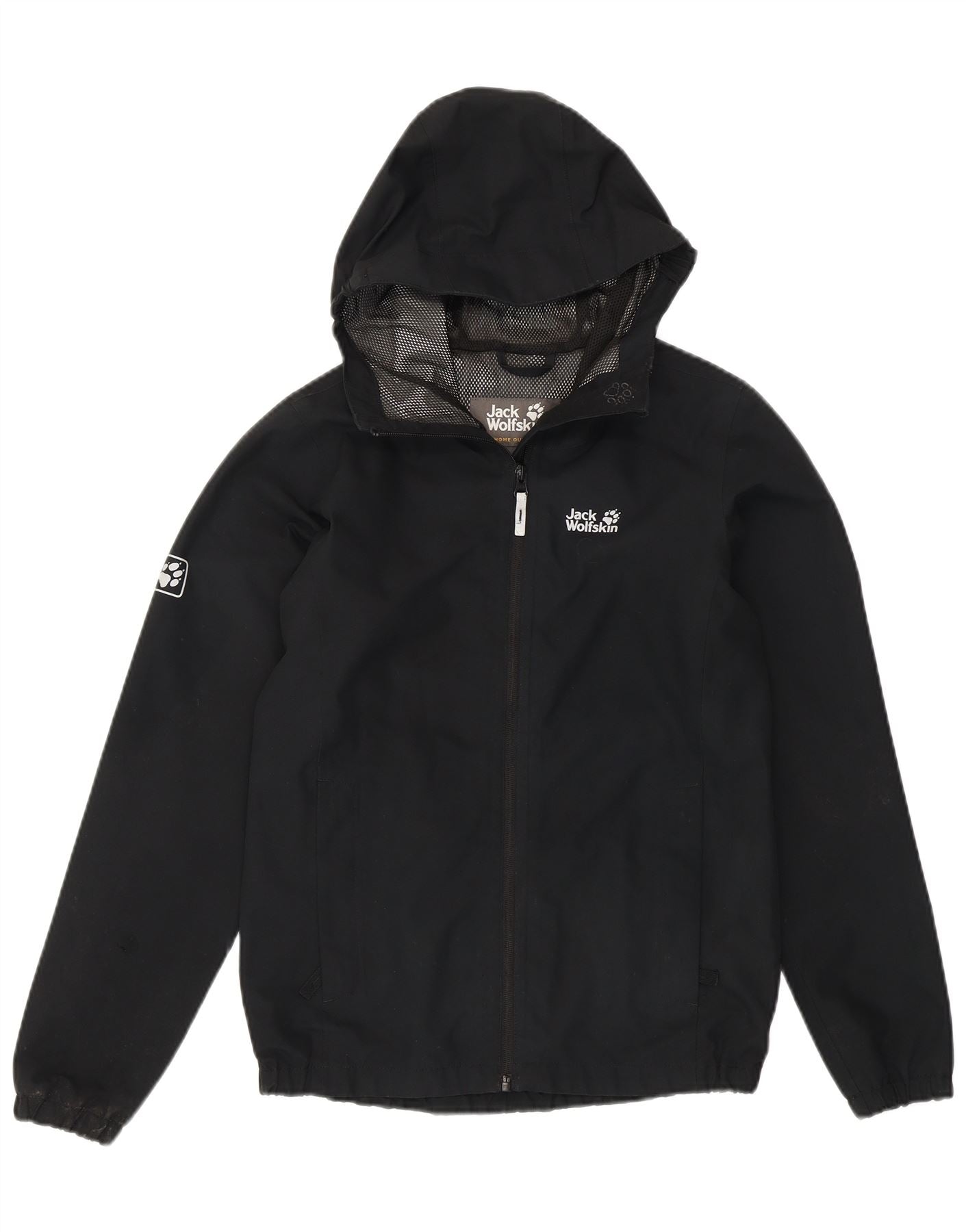 Jack Wolfskin Jungen Regenjacke mit grafischer Kapuze, 11–12 Jahre, schwarzes Polyester