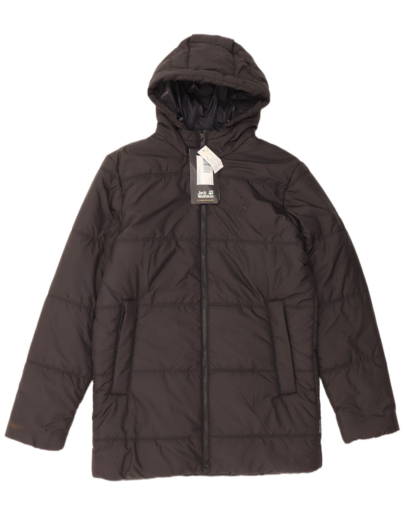 JACK WOLFSKIN Wattierte Herrenjacke mit Kapuze, UK 40, Mittelschwarz, Polyester