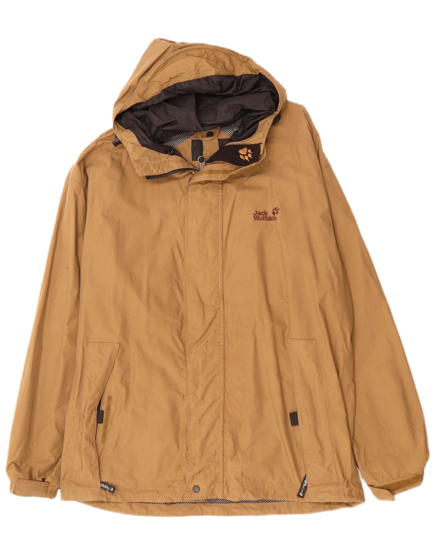 Jack Wolfskin Herren Regenjacke mit Kapuze UK 40/42 Large Beige Polyamid
