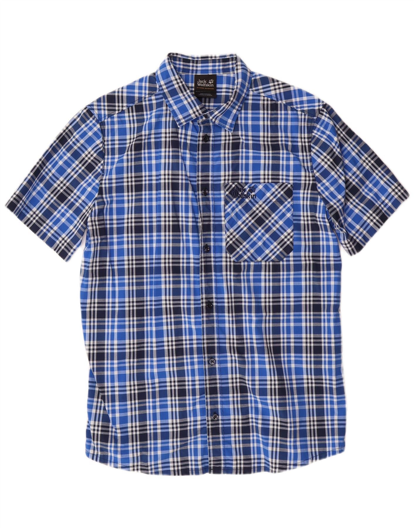 JACK WOLFSKIN Herren Kurzarmhemd UK 36/38 Small Blue Check Polyamid