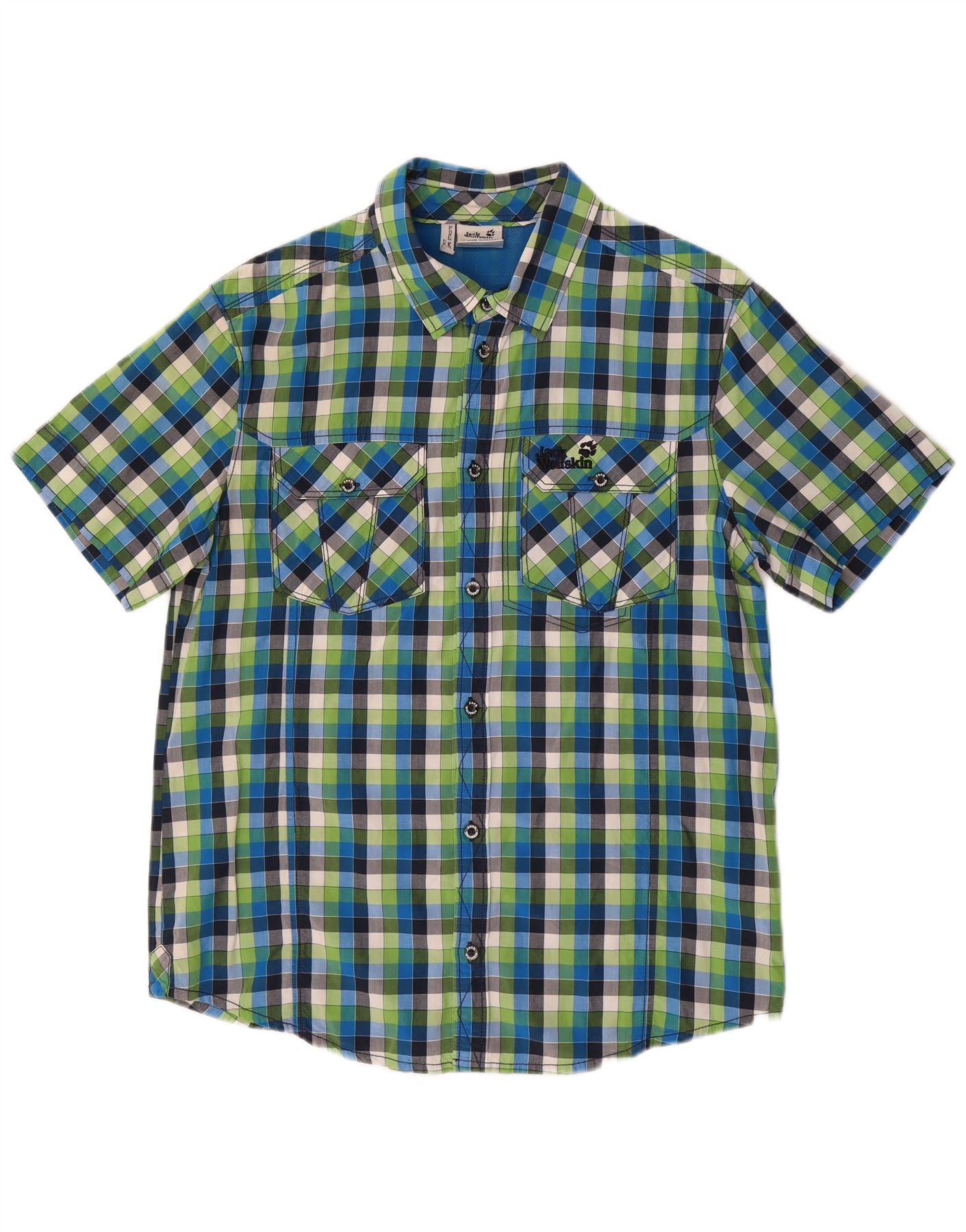 JACK WOLFSKIN Herren Kurzarmhemd UK 40/42 Große blau karierte Baumwolle